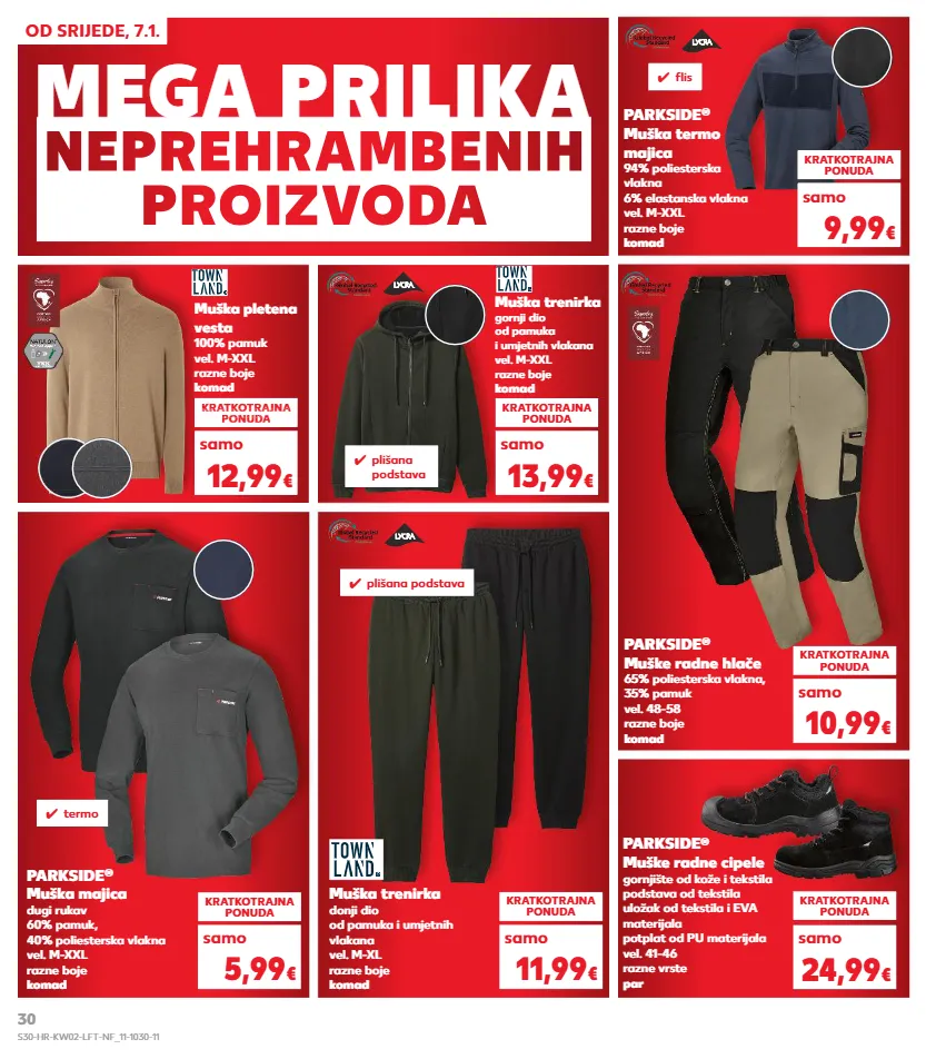 mega prilika neprehr ambenih pr oiz v od a od srijede, 7.1. muška pletena vesta 100% pamuk vel. m-xxl razne boje komad kratkotrajna ponuda kratkotrajna ponuda samo kratkotrajna ponuda super cijena kratkotrajna super cijena kratkotrajna ponuda super cijena onuda 12,99 € 13,99 € samo muška trenirka gornji dio od pamuka i umjetnih vlakana vel. m-xxl razne boje komad parkside ® muška majica dugi rukav 60% pamuk, 40% poliesterska vlakna vel. m-xxl razne boje komad kratkotrajna ponuda 5,99 € samo ✓ plišana podstava muška trenirka donji dio od pamuka i umjetnih vlakana vel. m-xl razne boje komad kratkotrajna ponuda 11,99 € samo ✓ plišana podstava ✓ termo parkside ® muške radne cipele gornjište od kože i tekstila podstava od tekstila uložak od tekstila i eva materijala potplat od pu materijala vel. 41-46 razne vrste par kratkotrajna ponuda 24,99 € samo parkside ® muške radne hlače 65% poliesterska vlakna, 35% pamuk vel. 48-58 razne boje komad kratkotrajna ponuda 10,99 € samo parkside ® muška termo majica 94% poliesterska vlakna 6% elastanska vlakna vel. m-xxl razne boje komad kratkotrajna ponuda 9,99 € samo ✓ fl is s30-hr-kw02-lft-nf_11-1030-11 30