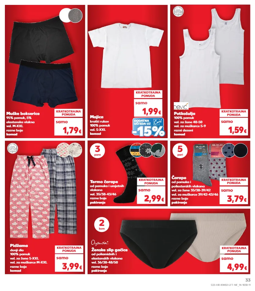 1,99 € muške bokserice 95% pamuk, 5% elastanska vlakna vel. m-xxl razne boje komad kratkotrajna ponuda samo 1,79 € pidžama donji dio 100% pamuk vel. za žene s-xxl vel. za muškarce m-xxl razne boje komad kratkotrajna ponuda samo 3,99 € potkošulja 100% pamuk vel. za žene 40-50 vel. za muškarce 5-9 razni dezeni komad kratkotrajna ponuda samo 1,59 € majica kratki rukav 100% pamuk vel. s-xxl komad samo sa o 1,99 samo 1,99 sam samo 1,99 sam samo o € o kratkotrajna ponuda 1,99 € ženske slip gaćice od poliamidnih i elastanskih vlakana vel. 36/38-48/50 razne boje pakiranje kratkotrajna ponuda samo 4,99 € 2 kom čarape od pamuka i poliesterskih vlakana vel. za žene 35/38-39/42 vel. za muškarce 39/42-43/46 razne boje pakiranje kratkotrajna ponuda samo 3,79 € termo čarape od pamuka i umjetnih vlakana vel. 35/38-43/46 razne boje pakiranje kratkotrajna ponuda samo 2,99 € 3 para 5 pari dodatna ušteda uz - - 15% 15% s33-hr-kw02-lft-nf_14-1030-11 33