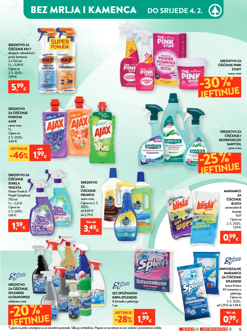 bez mrlja i kamenca do srijede 4. 2. *cijene na polici umanjene su za navedeni postotak. slika je simbolična. popust se ne odnosi na već snižene i promotivne artikle. 5 0 , 99 € 1 , 59 € 5 , 99 € jeftinije -28 % 2,79 1 , 99 € jeftinije -46 % 3,69 1 , 99 € već od: 0 , 99 € već od: 3 , 49 € sredstvo za čišćenje kh-7 duopack-odmašćivač i protiv kamenca 2 x 750 ml 1 l = 3,99 € cijena na 2. 5. 2025.: 7,99 € sredstvo za čišćenje i dezinfekciju sanytol razne vrste sredstvo za čišćenje pink stuff razne vrste sredstvo za čišćenje podova ajax razne vrste 1 l cijena na 2. 5. 2025.: 3,65 € sredstvo za čišćenje stakla violeta flower fresh ili purple symphony 750 ml 1 l = 2,12 € cijena na 2. 5. 2025.: 1,86 € sredstvo za čišćenje splendid ultrapower odabrane vrste maramice za čišćenje blista univerzalne ili lavanda 50/1 cijena na 2. 5. 2025.: 1,59 € sredstvo za čišćenje pronto razne vrste cijena na 2. 5. 2025.: od 4,65 € do 5,79 € univerzalne maramice za čišćenje splendid limun ili lotos 80 maramica u pakiranju cijena na 2. 5. 2025.: od 1,29 € do 1,98 € set spužvastih krpa splendid 8 komada u pakiranju 1 set -30 % * jeftinije -25 % * jeftinije -20 % * jeftinije