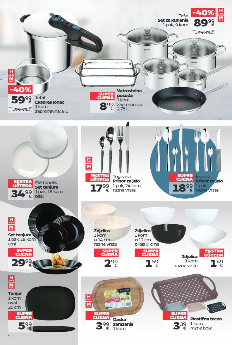 4 89 99 € Tefal Set za kuhanje 1 pak, 9 kom - 40 % 149,99 € 34 99 € Metropolis Set tanjura 1 pak, 18 kom bijeli ekstra ušteda 3 39 € Plastična tacna 1 kom razne boje super cijena 3 99 € Daska zarezanje 1 kom super cijena 29 99 € Set tanjura 1 pak, 18 kom crni super cijena 1 59 € Zdjelica 1 kom ø 12 cm bijela ili crna super cijena 1 49 € Zdjelica 1 kom razne vrste ekstra ušteda 5 99 € Tanjur 1 kom oval 25 cm super cijena Tefal Ekspres lonac 1 kom zapremnina: 8 L 59 99 € - 40 % 99,99 € 8 99 € Vatrostalna posuda 1 kom zapremnina: 2,75 L super cijena 17 99 € Tognana Pribor za jelo 1 pak, 24 kom razne vrste ekstra ušteda 18 99 € Inoxriv Pribor za jelo 1 pak razne vrste super cijena 2 99 € Zdjelica 1 kom ø 14 cm razne vrste super cijena