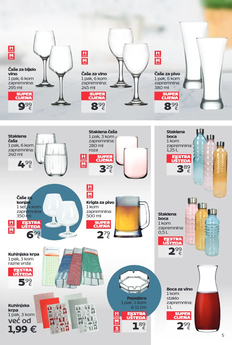 5 3 89 € staklena boca 1 kom zapremnina: 1,25 l ekstra ušteda 2 99 € boca za vino 1 kom staklo zapremnina: 1 l super cijena 9 99 € čaše za bijelo vino 1 pak, 6 kom zapremnina: 295 ml super cijena 8 99 € čaše za vino 1 pak, 6 kom zapremnina: 245 ml super cijena 6 99 € čaše za konjak 1 set, 4 kom zapremnina: 350 ml ekstra ušteda 8 99 € čaše za pivo 1 pak, 6 kom zapremnina: 380 ml super cijena 3 29 € staklena čaša 1 pak, 3 kom zapremnina: 280 ml roza super cijena 2 79 € krigla za pivo 1 kom zapremnina: 500 ml super cijena 5 99 € kuhinjska krpa 1 pak, 3 kom razne vrste ekstra ušteda 4 99 € staklena čaša 1 pak, 6 kom zapremnina: 240 ml 1 89 € pepeljara 1 pak, 2 kom ø 11 cm ekstra ušteda 2 99 € staklena boca 1 kom zapremnina: 0,5 l ekstra ušteda već od 1,99 € kuhinjska krpa 1 pak, 3 kom