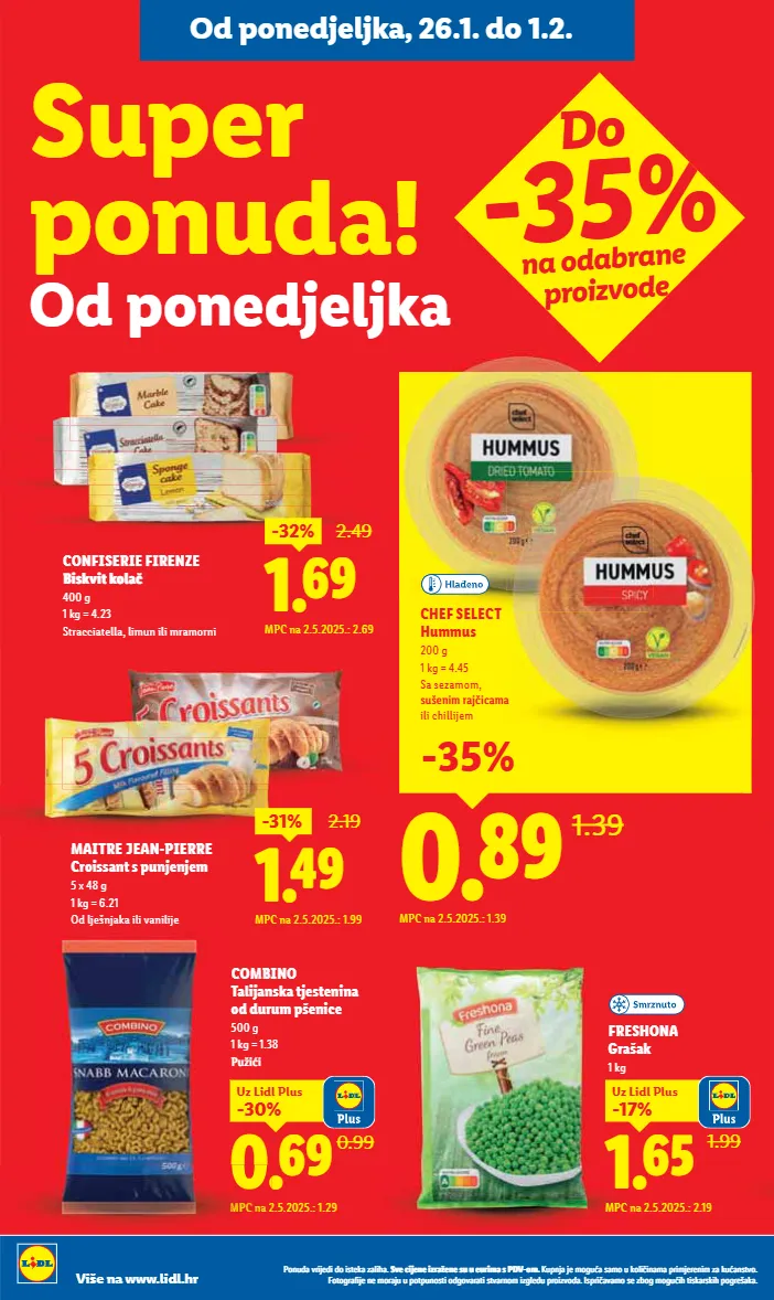 super ponuda! od ponedjeljka do -35% na odabrane proizvode `iëî -32% 2.49 mpc na 2.5.2025.: 2.69 confiserie firenze àóïċàúïàò 400 g 1 kg = 4.23 stracciatella, limun ili mramorni maitre jean-pierre croissant s punjenjem 5 x 48 g 1 kg = 6.21 od lješnjaka ili vanilije `iéî -31% 2.19 mpc na 2.5.2025.: 1.99 freshona grašak 1 kg 1.99 `iëê -17% uz lidl plus mpc na 2.5.2025.: 2.19 combino talijanska tjestenina od durum pšenice 500 g 1 kg = 1.38 vÿęàà 0.99 _iëî -30% uz lidl plus mpc na 2.5.2025.: 1.29 _iíî 1.39 mpc na 2.5.2025.: 1.39 -35% m m mpc m c na na 2 od lješnjaka ili vanilije chef select hummus 200 g 1 kg = 4.45 sa sezamom, óÿõ¨ùàøïì àø ili chillijem od ponedjeljka, 26.1. do 1.2. ǭàȕȡǽdzċȝǿȋ¨ǽǿǽàǿóú¨ïdzėdzȏǿ½dzı ]ċ¨ǿȋ¨ȕ¨ǿėȝdzę¨ȕ¨óȡȡ¨ȡȝǿȕdzóǭǟtɩàȕı ;ȡȝȕȋdzȋ¨ȕà¸ȡdzódzȕàȡïàȏǿ ǿȕdzȕdzȝȝǿȕȋ¨ȝ¨ȕǿȕėdzïȡdzȕóúċàı %àúà¸ȝdz³ǿȋ¨ȕ¨ȕàȝdzȋȡȡȝàúȝȡȕàóúǿàǽ¸àċdzȝdzúǿóúċdzȝȕàȕǿė¸ȏ¨ǽȡȝȝàǿėċàǽdzıǣóȝȝǿ dzċdzȕàó¨ėà¸ȕà¸ȡǿ½úǿóïdzȝóïǿ½ȝà¸ȝ¨õdzïdzı više na www.lidl.hr