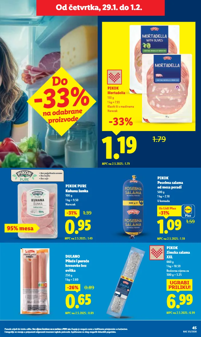 j¤ ¨úċïúïi̇ɲƥıɯı¤àɯıɲı `iæî 1.79 pikok mortadella 150 g 1 kg = 7.93 klasik ili s maslinama narezak mpc na 2.5.2025.: 1.79 -33% pikok posebna salama od mesa peradi 500 g 1 kg = 2.18 u komadu do -33% na odabrane proizvode eiîî ugrabi priliku! mpc na 2.5.2025.: 6.99 pikok zimska salama xxl 660 g 1 kg = 10.59 redovna cijena za 300 g = 3.25 ok t ad ad el el la la _iëê ɩɲơř 0.89 mpc na 2.5.2025.: 0.89 dulano vàò¨¨àìÿ﨨 hrenovke bez ovitka 250 g 1 kg = 2.60 1.59 `iåî ɩƞɯř uz lidl plus mpc na 2.5.2025.: 1.59 45 nac 05/2026 ǭàȕȡǽdzċȝǿȋ¨ǽǿǽàǿóú¨ïdzėdzȏǿ½dzı ]ċ¨ǿȋ¨ȕ¨ǿėȝdzę¨ȕ¨óȡȡ¨ȡȝǿȕdzóǭǟtɩàȕı ;ȡȝȕȋdzȋ¨ȕà¸ȡdzódzȕàȡïàȏǿ ǿȕdzȕdzȝȝǿȕȋ¨ȝ¨ȕǿȕėdzïȡdzȕóúċàı %àúà¸ȝdz³ǿȋ¨ȕ¨ȕàȝdzȋȡȡȝàúȝȡȕàóúǿàǽ¸àċdzȝdzúǿóúċdzȝȕàȕǿė¸ȏ¨ǽȡȝȝàǿėċàǽdzıǣóȝȝǿ dzċdzȕàó¨ėà¸ȕà¸ȡǿ½úǿóïdzȝóïǿ½ȝà¸ȝ¨õdzïdzı _iîê ɩƞɯř 1.39 mpc na 2.5.2025.: 1.49 pikok pure ;ÿ½ùõÿùï 100 g 1 kg = 9.50 narezak ƥơřø¨ó ŋ¨ėìàì àċ ïàø¨ • bez bojila • bez soje