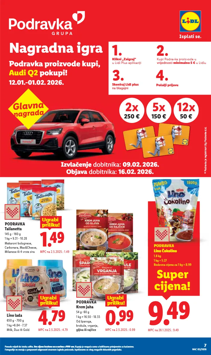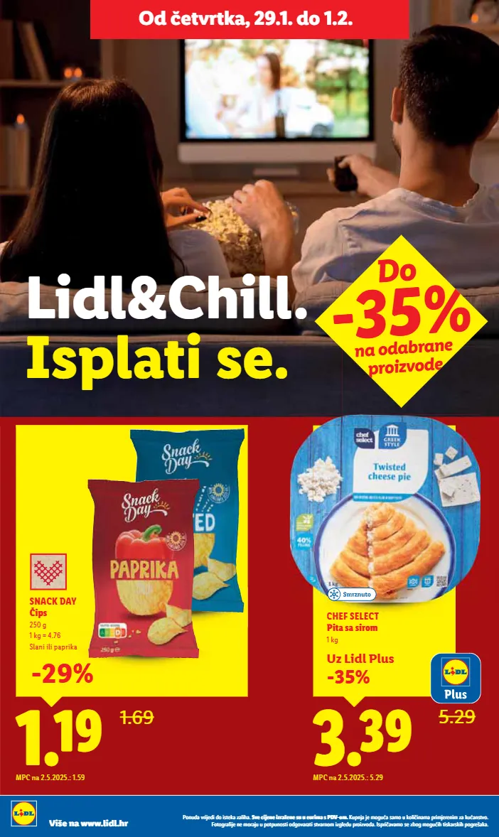 ǭàȕȡǼDzĊȝǿȋ¨ǼǿǼàǿóú¨ÏDzėDzȎǿ½Dzı ]Ċ¨ǿȋ¨ȕ¨ǿėȝDzę¨ȕ¨óȡȡ¨ȡȝǿȔDzóǭǞtƖàȔı ;ȡȜȕȋDzȋ¨Ȕà¸ȡDzóDzȔàȡÏàȎǿ ǿȕDzȔDzȜȝǿȔȋ¨ȝ¨ȕǿȔėDzÏȡDzȕóúĊàı %àúà¸ȝDz³ǿȋ¨ȕ¨ȔàȝDzȋȡȡȜàúȜȡȕàóúǿàǼ¸àĊDzȝDzúǿóúĊDzȝȕàȔǿė¸Ȏ¨ǼȡȜȝàǿėĊàǼDzıǢóȜȝǿ DzĊDzȔàó¨ėà¸Ȕà¸ȡǿ½úǿóÏDzȝóÏǿ½Ȝà¸ȝ¨õDzÏDzı Više na www.lidl.hr Od ponedjeljka, 26.1. do 1.2. IZDANJE 05/2026 ǭàȕȡǼDzĊȝǿȋ¨ǼǿǼàǿóú¨ÏDzėDzȎǿ½Dzı ]Ċ¨ǿȋ¨ȕ¨ǿėȝDzę¨ȕ¨óȡȡ¨ȡȝǿȔDzóǭǞtƖàȔı ;ȡȜȕȋDzȋ¨Ȕà¸ȡDzóDzȔàȡÏàȎǿ ǿȕDzȔDzȜȝǿȔȋ¨ȝ¨ȕǿȔėDzÏȡDzȕóúĊàı %àúà¸ȝDz³ǿȋ¨ȕ¨ȔàȝDzȋȡȡȜàúȜȡȕàóúǿàǼ¸àĊDzȝDzúǿóúĊDzȝȕàȔǿė¸Ȏ¨ǼȡȜȝàǿėĊàǼDzıǢóȜȝǿ DzĊDzȔàó¨ėà¸Ȕà¸ȡǿ½úǿóÏDzȝóÏǿ½Ȝà¸ȝ¨õDzÏDzı Više na www.lidl.hr GOLDENFOOD ]Ċ̨ęìúÏ cca 3 kg S iznutricama kg biÇÊ -27% 4.49 MPC na 2.5.2025.: 2.95 PILOS 9à¸ÿïú ¸ï Ïà¸úÀì 400 g 1 kg = 2.23 10% m.m. _iÊÉ Ugrabi ìïǿÒÀÏÿĸ MPC na 26.1.2026.: 0.55 MIZO CÒĄ̀Ïà 1 l 2.8% m.m. ] ¨ìàØ 1 kom = 2.- +Yt]d];d VàØØ¨ó%ïÀú¨ó 1 kg tÒàĊÀúÀ Do -50% na odabrane proizvode _ú¨¤Àÿėóÿì¨ï ìàÙÿ¤¨Àė=À¤Òı .óìÒúǿó¨ı `iÉÉ 2.89 MPC na 2.5.2025.: 2.89 -50% 026.: 0.55 k 1 k àƖàÒ 1 l = 1.- Y¨¤àĊÙĄ̀Ùė 2 l = 2.39 VàĊïúÙÙÏÙ¤ ÿÏÒÌÿ ¨Ų̀ÿĄ̀Ùÿ biÎÎ 2 x 2 l MPC na 2.5.2025.: 3.99 1.49 _iÍÎ -40% iė=À¤ÒVÒÿó MPC na 2.5.2025.: 1.39 g `iÇÎ kg MPC na 2.5.2025.: 1.69 àØÌÿÏ ė¨Ò¨Ù ]àïúijÒúÙÀ¤¨ÒÀõ¨ó tïĄ̀¤À¤àóïĄ̀¤¨İƎƔıƍı