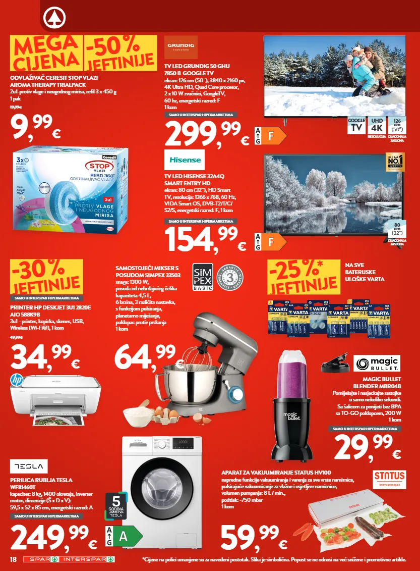 18 rezolucija uhd 4k google tv samostojeći mikser s posudom simpex 33503 snaga: 1300 w, posuda od nehrđajućeg čelika kapaciteta 4,5 l, 6 brzina, 3 različita nastavka, s funkcijom pulsiranja, planetarno miješanje, poklopac protiv prskanja 1 kom *cijene na polici umanjene su za navedeni postotak. slika je simbolična. popust se ne odnosi na već snižene i promotivne artikle. magic bullet blender mbr04b pomiješajte i nasjeckajte sastojke u samo nekoliko sekundi. sa šalicom za ponijeti bez bpa sa to-go poklopcem, 200 w 1 kom 29 , 99 € perilica rublja tesla wf81460t kapacitet: 8 kg, 1400 okretaja, inverter motor, dimenzije (š x d x v): 59,5 x 52 x 85 cm, energetski razred: a 249 , 99 € odvlaživač ceresit stop vlazi aroma therapy trialpack 2u1-protiv vlage i neugodnog mirisa, refil 3 x 450 g 1 pak na sve baterijske uloške varta tv led grundig 50 ghu 7850 b google tv ekran: 126 cm (50¨), 3840 x 2160 px, 4k ultra hd, quad core procesor, 2 x 10 w zvučnici, googletv, 60 hz, energetski razred: f 1 kom 299 , 99 € tv led hisense 32a4q smart entry hd ekran: 80 cm (32¨), hd smart tv, rezolucija: 1366 x 768, 60 hz, vida smart os, dvb-t2/t/c/ s2/s, energetski razred: f, 1 kom 154 , 99 € printer hp deskjet 3u1 2820e aio 588k9b 3u1 - printer, kopirka, skener, usb, wireless (wi-fi®), 1 kom 64 , 99 € 34 , 99 € 49,99 € 59 , 99 € 9 , 99 € 19,99 € -25 % * jeftinije 80 cm (32”) dijagonala zaslona 126 cm (50”) dijagonala zaslona aparat za vakuumiranje status hv100 napredne funkcije vakuumiranja i varenja za sve vrste namirnica, pulsirajuće vakuumiranje za vlažne i osjetljive namirnice, volumen pumpanja: 8 l / min., podtlak: -750 mbar 1 kom -50 % jeftinije mega cijena samo u interspar hipermarketima samo u interspar hipermarketima samo u interspar hipermarketima samo u interspar hipermarketima -30 % jeftinije samo u interspar hipermarketima