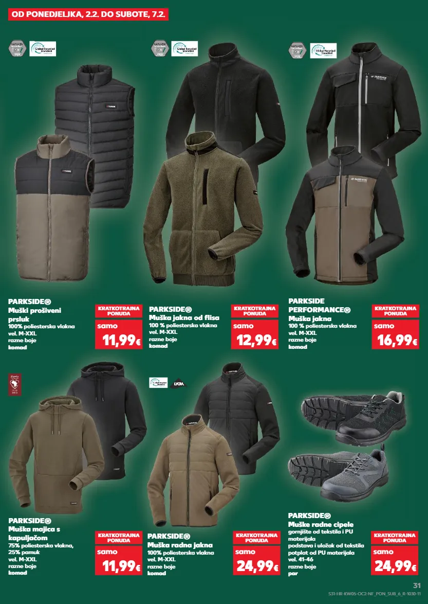 od ponedjeljka, 2.2. do subote, 7.2. parkside® muški prošiveni prsluk 100% poliesterska vlakna vel. m-xxl razne boje komad parkside® muška jakna od flisa 100 % poliesterska vlakna vel. m-xxl razne boje komad parkside performance® muška jakna 100 % poliesterska vlakna vel. m-xxl razne boje komad kratkotrajna ponuda kratkotrajna ponuda kratkotrajna ponuda samo samo samo 11,99 € 12,99 € 16,99 € parkside® muška majica s kapuljačom 75% poliesterska vlakna, 25% pamuk vel. m-xxl razne boje komad parkside® muška radna jakna 100% poliesterska vlakna vel. m-xxl razne boje komad parkside® muške radne cipele gornjište od tekstila i pu materijala podstava i uložak od tekstila potplat od pu materijala vel. 41-46 razne boje par kratkotrajna ponuda kratkotrajna ponuda kratkotrajna ponuda samo samo samo 11,99 € 24,99 € 24,99 € s31-hr-kw05-oc2-nf_pon_sub_6_r-1030-11 31