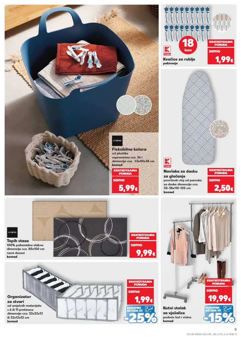 kvačice za rublje pakiranje fleksibilna košara od plastike zapremnina cca. 36 l dimenzije cca. 53x40x38 cm komad kratkotrajna ponuda samo 1,99 € kratkotrajna ponuda samo 5,99 € navlaka za dasku za glačanje površinski sloj od pamuka za daske dimenzije cca. 30-38x110-120 cm komad tepih staza 100% poliamidna vlakna dimenzije cca. 80x150 cm razni dezeni komad kratkotrajna ponuda samo 2,50 € kratkotrajna ponuda samo 9,99 € kratkotrajna ponuda samo 19,99 € organizator za stvari od umjetnih materijala s 6 ili 11 pretinaca dimenzije cca. 32x32x12 ili 32x12x12 cm komad kutni stalak za vješalice podesiv kut i visina komad 18 kom kratkotrajna ponuda samo 1,99 € dodatna ušteda uz - - 25 % 25 % dodatna ušteda uz - - 15% 15% s9-hr-kw05-oc2-nf_sri_uto_4_r-1030-11 9