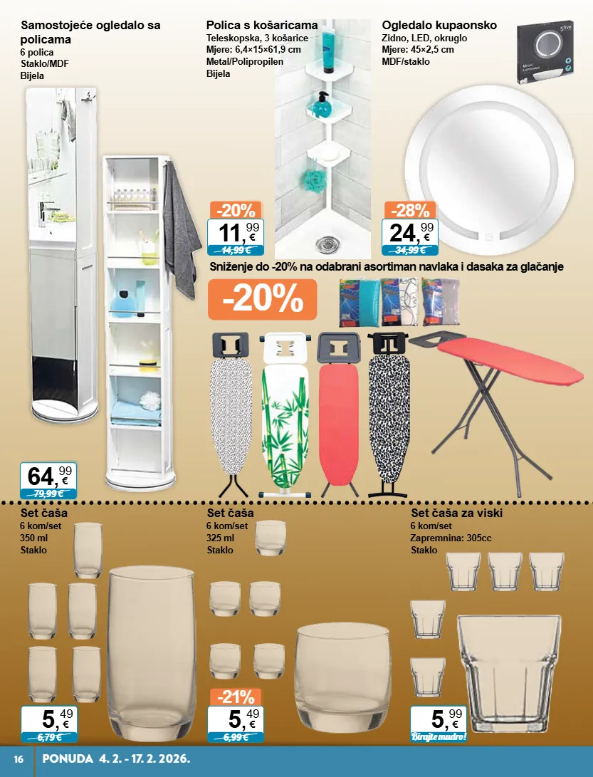 -20% 14,99 € 11 , 99 € - 28 % 34,99 € 24 , 99 € 64 , 99 € 79,99 € 5 , 49 € 6,79 € -21% 6,99 € 5 , 49 € 5 , 99 € birajte mudro! 16 ponuda 4. 2. - 17. 2. 2026. polica s košaricama teleskopska, 3 košarice mjere: 6,4×15×61,9 cm metal/polipropilen bijela ogledalo kupaonsko zidno, led, okruglo mjere: 45×2,5 cm mdf/staklo samostojeće ogledalo sa policama 6 polica staklo/mdf bijela sniženje do -20% na odabrani asortiman navlaka i dasaka za glačanje -20% set čaša 6 kom/set 350 ml staklo set čaša 6 kom/set 325 ml staklo set čaša za viski 6 kom/set zapremnina: 305cc staklo