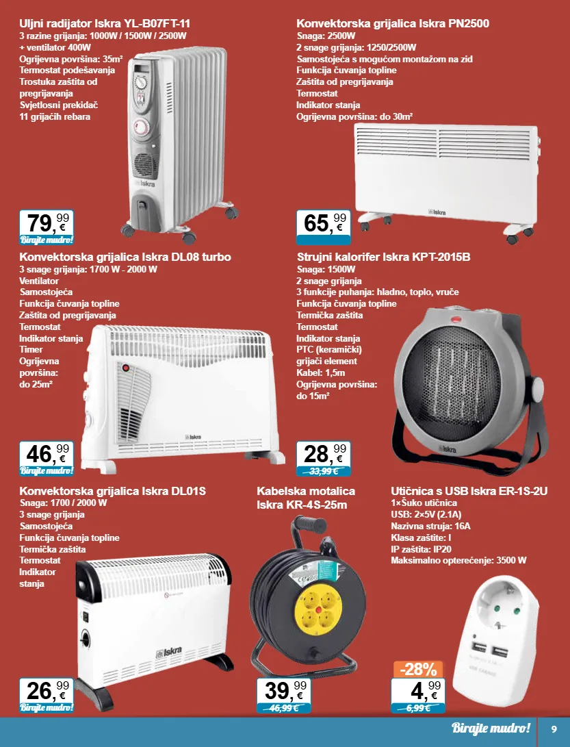 26 , 99 € birajte mudro! 46 , 99 € birajte mudro! 65 , 99 € 79 , 99 € birajte mudro! 28 , 99 € 33,99 € 39 , 99 € 46,99 € - 28 % 6,99 € 4 , 99 € birajte mudro! 9 konvektorska grijalica iskra dl01s snaga: 1700 / 2000 w 3 snage grijanja samostojeća funkcija čuvanja topline termička zaštita termostat indikator stanja konvektorska grijalica iskra dl08 turbo 3 snage grijanja: 1700 w - 2000 w ventilator samostojeća funkcija čuvanja topline zaštita od pregrijavanja termostat indikator stanja timer ogrijevna površina: do 25m² konvektorska grijalica iskra pn2500 snaga: 2500w 2 snage grijanja: 1250/2500w samostojeća s mogućom montažom na zid funkcija čuvanja topline zaštita od pregrijavanja termostat indikator stanja ogrijevna površina: do 30m 2 uljni radijator iskra yl-b07ft-11 3 razine grijanja: 1000w / 1500w / 2500w + ventilator 400w ogrijevna površina: 35m 2 termostat podešavanja trostuka zaštita od pregrijavanja svjetlosni prekidač 11 grijaćih rebara strujni kalorifer iskra kpt-2015b snaga: 1500w 2 snage grijanja 3 funkcije puhanja: hladno, toplo, vruče funkcija čuvanja topline termička zaštita termostat indikator stanja ptc (keramički) grijači element kabel: 1,5m ogrijevna površina: do 15m 2 kabelska motalica iskra kr-4s-25m utičnica s usb iskra er-1s-2u 1ךuko utičnica usb: 2×5v (2.1a) nazivna struja: 16a klasa zaštite: i ip zaštita: ip20 maksimalno opterećenje: 3500 w