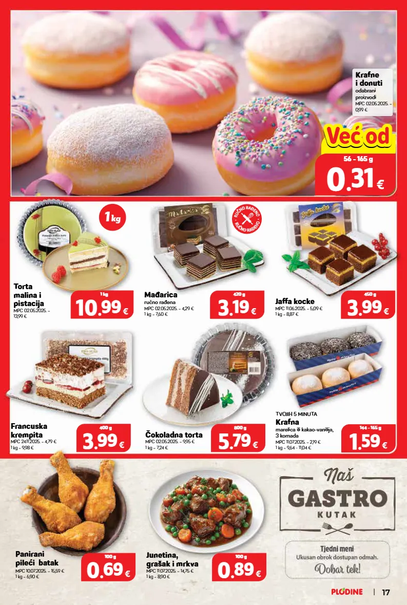 10 10 . . 99 99 € 1 kg krafne i donuti odabrani proizvodi mpc 02.05.2025. = 0,99 € torta malina i pistacija mpc 02.05.2025. = 13,99 € mađarica ručno rađena mpc 02.05.2025. = 4,29 € 1 kg = 7,60 € 3 3 . . 19 19 € 420 g 0.00 € 0 0 . . 31 31 € 56 - 165 g već od već od jaffa kocke mpc 11.06.2025. = 5,09 € 1 kg = 8,87 € 3 3 . . 99 99 € 450 g tvojih 5 minuta krafna marelica ili kakao-vanilija, 3 komada mpc 11.07.2025. = 2,19 € 1 kg = 9,64 - 11,04 € 1 1 . . 59 59 € 144 - 165 g francuska krempita mpc 24.11.2025. = 4,79 € 1 kg = 9,98 € čokoladna torta mpc 02.05.2025. = 9,95 € 1 kg = 7,24 € 3 3 . . 99 99 € 400 g 5 5 . . 79 79 € 800 g panirani pileći batak mpc 10.07.2025. = 15,59 € 1 kg = 6,90 € 0 0 . . 69 69 € 100 g junetina, grašak i mrkva mpc 11.07.2025. = 14,75 € 1 kg = 8,90 € 0 0 . . 89 89 € 100 g 1 kg r u č n o r a đ e n o • r u č n o r a đ e n o • 17