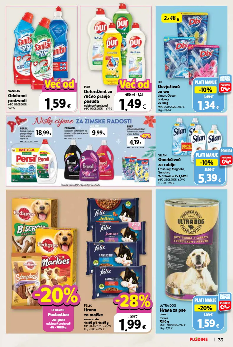 felix hrana za mačke razne vrste 4x 80 g ili 4x 85 g mpc 09.07.2025. = 2,99 € 1 kg = 5,85 - 6,22 € sanitar odabrani proizvodi mpc 02.05.2025. = 4,99 € -20% -20% pedigree poslastice za pse odabrani proizvodi 45 - 1080 g 0.00 € 1 1 . . 59 59 € već od već od 18 18 . . 99 99 € 9 9 . . 99 99 € 1 1 . . 99 99 € 4x80 g ili 4x85 g 2.79 € -28% -28% 7.99 € mpc 02.05.2025. = 19,99 € mpc 09.07.2025. = 21,99 € mpc 13.07.2025. = 8,89 € 4 4 . . 19 19 € plati manje 5.99 € -10% -10% 5 5 . . 39 39 € ponuda mpc 23.06.2025.=6,99 € 1 l = 1,61 - 1,98 € silan omekšivač za rublje fresh sky, magnolia, sensitive 2x 1,364 l ili 2x 1,672 l -47% -47% pur deterdžent za ručno pranje posuđa odabrani proizvodi mpc 02.05.2025. = 4,79 € 0.00 € 1 1 . . 49 49 € 450 ml - 1,2 l već od već od plati manje 1.49 € -10% -10% 1 1 . . 34 34 € aktiviraj kupon plati manje 1.99 € -20% -20% 1 1 . . 59 59 € aktiviraj kupon mpc 09.07.2025.=2,09 € 1 kg = 13,96 € dix osvježivač za wc limun, ocean ili flower 2x 48 g mpc 09.07.2025.=2,19 € 1 kg = 1,28 € ultra dog hrana za pse perad mrkva 1240 g 2 x 48 g 33