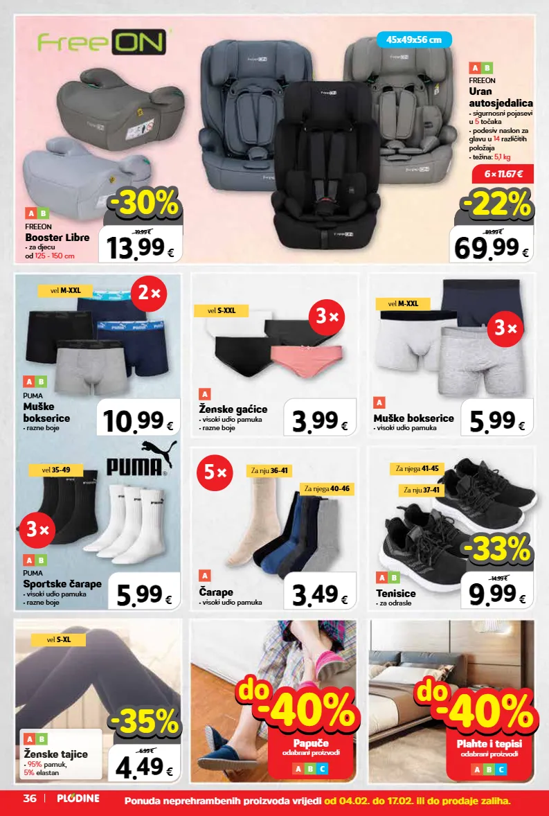 3 3 . . 49 49 € 5 5 . . 99 99 € 3 3 . . 99 99 € 5 5 . . 99 99 € 10 10 . . 99 99 € 6 × 11.67 € top cijena! već od hit cijena! super prilika! 13 13 . . 99 99 € xxxxx samo u plodinama 19.99 € -30% -30% top cijena! već od hit cijena! super prilika! 69 69 . . 99 99 € xxxxx samo u plodinama 89.99 € -22% -22% 9 9 . . 99 99 € 14.99 € -33% -33% 4 4 . . 49 49 € 6.99 € -35% -35% ponuda neprehrambenih proizvoda vrijedi od 04.02. do 17.02. ili do prodaje zaliha. za nju 37-41 za nju 36-41 za njega 41-45 za njega 40-46 vel m-xxl vel 35-49 vel m-xxl vel s-xxl vel s-xl 3 × 3 × 5 × 3 × 2 × 45x49x56 cm 36 a čarape • visoki udio pamuka a b freeon uran autosjedalica • sigurnosni pojasevi u 5 točaka • podesiv naslon za glavu u 14 različitih položaja • težina: 5,1 kg plahte i tepisi odabrani proizvodi do do -40% -40% a b c papuče odabrani proizvodi do do -40% -40% a b c freeon booster libre • za djecu od 125 - 150 cm a b tenisice • za odrasle a b ženske tajice • 95% pamuk, 5% elastan a b puma sportske čarape • visoki udio pamuka • razne boje a b puma muške bokserice • razne boje a b muške bokserice • visoki udio pamuka a ženske gaćice • visoki udio pamuka • razne boje a