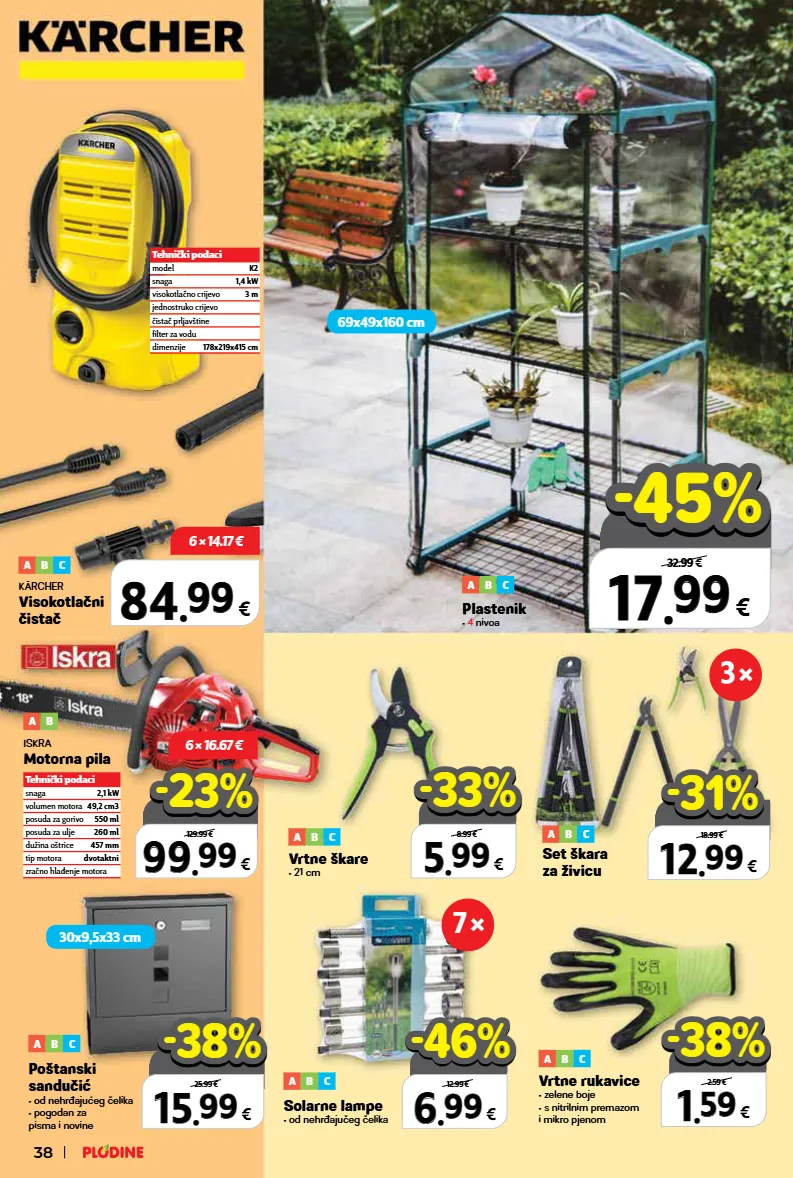tehnički podaci model k2 snaga 1,4 kw visokotlačno crijevo 3 m jednostruko crijevo čistač prljavštine filter za vodu dimenzije 178x219x415 cm top cijena! već od hit cijena! super prilika! 15 15 . . 99 99 € xxxxx samo u plodinama 25.99 € -38% -38% 5 5 . . 99 99 € 8.99 € -33% -33% 6 6 . . 99 99 € 12.99 € -46% -46% 1 1 . . 59 59 € 2.59 € -38% -38% top cijena! već od hit cijena! super prilika! 12 12 . . 99 99 € 7 komada samo u plodinama 18.99 € -31% -31% top cijena! već od hit cijena! super prilika! 17 17 . . 99 99 € xxxxx samo u plodinama 32.99 € -45% -45% 6 × 14.17 € 6 × 16.67 € top cijena! već od hit cijena! super prilika! 99 99 . . 99 99 € samo u plodinama 129.99 € -23% -23% 69x49x160 cm 30x9,5x33 cm 38 set škara za živicu a b c vrtne škare • 21 cm a b c vrtne rukavice • zelene boje • s nitrilnim premazom i mikro pjenom a b c solarne lampe • od nehrđajučeg čelika a b c a b c plastenik • 4 nivoa 7 × 3 × a b c poštanski sandučić • od nehrđajućeg čelika • pogodan za pisma i novine kärcher visokotlačni čistač a b c 84 84 . . 99 99 € tehnički podaci snaga 2,1 kw volumen motora 49,2 cm3 posuda za gorivo 550 ml posuda za ulje 260 ml dužina oštrice 457 mm tip motora dvotaktni zračno hlađenje motora iskra motorna pila a b