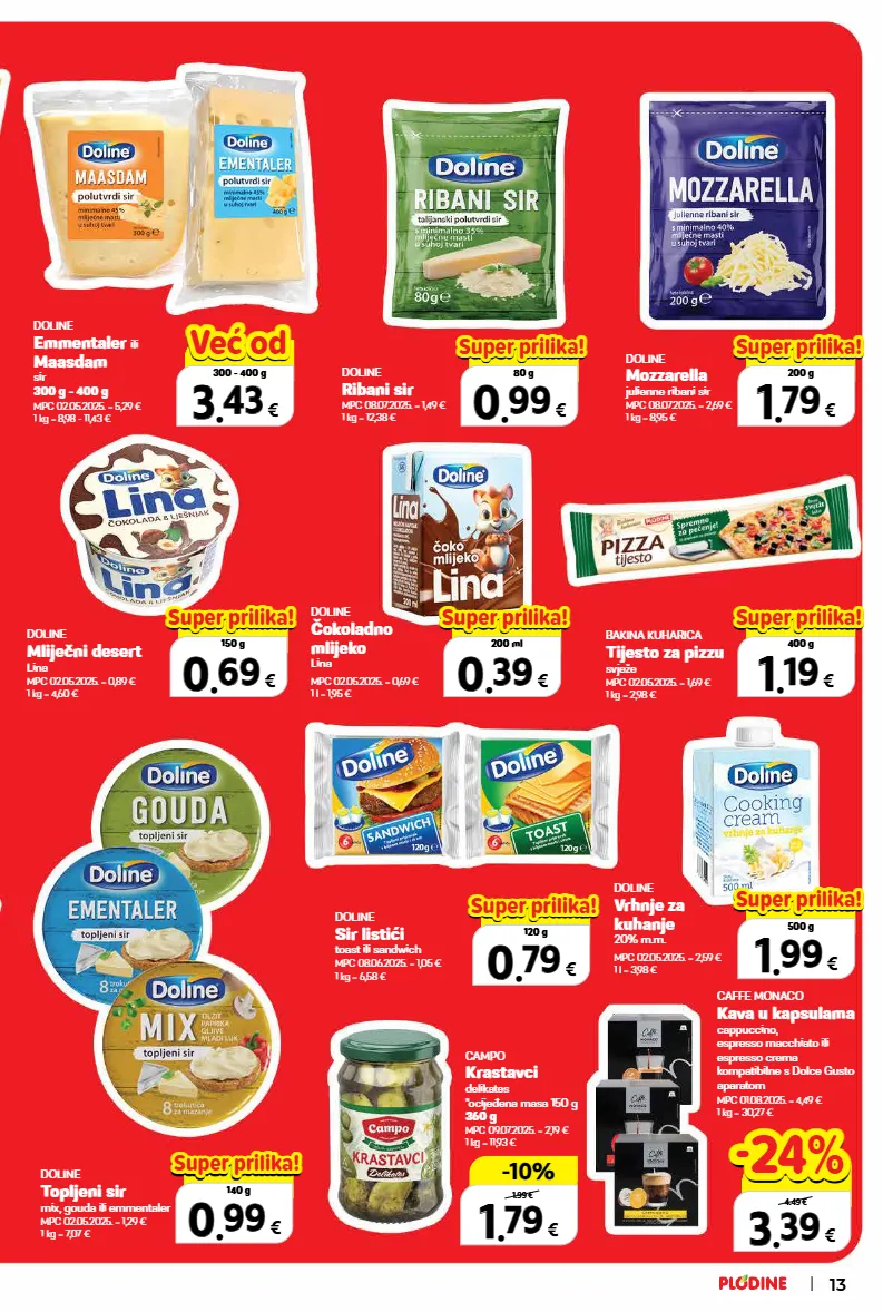 top cijena! već od hit cijena! 1 1 . . 99 99 € 500 g super prilika! super prilika! top cijena! već od hit cijena! 0 0 . . 79 79 € 120 g super prilika! super prilika! top cijena! već od hit cijena! 0 0 . . 99 99 € 140 g super prilika! super prilika! bakina kuharica tijesto za pizzu svježe mpc 02.05.2025. = 1,69 € 1 kg = 2,98 € doline mliječni desert lina mpc 02.05.2025. = 0,89 € 1 kg = 4,60 € doline čokoladno mlijeko lina mpc 02.05.2025. = 0,69 € 1 l = 1,95 € doline ribani sir mpc 08.07.2025. = 1,49 € 1 kg = 12,38 € doline mozzarella julienne ribani sir mpc 08.07.2025. = 2,69 € 1 kg = 8,95 € doline emmentaler ili maasdam sir 300 g - 400 g mpc 02.05.2025. = 5,29 € 1 kg = 8,98 - 11,43 € doline sir listići toast ili sandwich mpc 08.06.2025. = 1,05 € 1 kg = 6,58 € doline vrhnje za kuhanje 20% m.m. mpc 02.05.2025. = 2,59 € 1 l = 3,98 € doline topljeni sir mix, gouda ili emmentaler mpc 02.05.2025. = 1,29 € 1 kg = 7,07 € campo krastavci delikates *ocijeđena masa 150 g 360 g mpc 09.07.2025. = 2,19 € 1 kg = 11,93 € 1 1 . . 79 79 € xxxxx -10% -10% 1.99 € caffe monaco kava u kapsulama cappuccino, espresso macchiato ili espresso crema kompatibilne s dolce gusto aparatom mpc 01.08.2025. = 4,49 € 1 kg = 30,27 € top cijena! već od hit cijena! super prilika! 3 3 . . 39 39 € 280 g samo u plodinama 4.49 € -24% -24% top cijena! već od hit cijena! 0 0 . . 99 99 € 80 g super prilika! super prilika! top cijena! već od hit cijena! 0 0 . . 69 69 € 150 g super prilika! super prilika! top cijena! već od hit cijena! 0 0 . . 39 39 € 200 ml super prilika! super prilika! top cijena! već od hit cijena! 1 1 . . 19 19 € 400 g super prilika! super prilika! top cijena! već od hit cijena! 1 1 . . 79 79 € 200 g super prilika! super prilika! top cijena! već od hit cijena! 3 3 . . 43 43 € 300 - 400 g već od već od 13