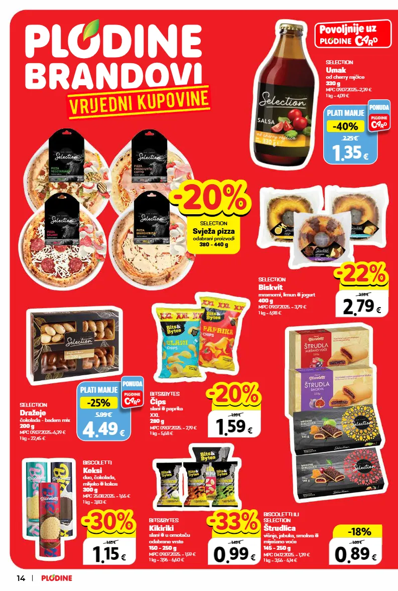 bits&bytes čips slani ili paprika xxl 280 g mpc 09.07.2025. = 2,19 € 1 kg = 5,68 € biscoletti ili selection štrudlica višnja, jabuka, smokva ili miješano voće 145 - 250 g mpc 04.12.2025. = 1,39 € 1 kg = 3,56 - 6,14 € top cijena! već od hit cijena! super prilika! 1 1 . . 59 59 € 280 g samo u plodinama 1.99 € -20% -20% top cijena! već od hit cijena! super prilika! 2 2 . . 79 79 € 280 g samo u plodinama 3.59 € -22% -22% top cijena! već od hit cijena! super prilika! 1 1 . . 15 15 € 280 g samo u plodinama 1.65 € -30% -30% top cijena! već od hit cijena! super prilika! 0 0 . . 89 89 € 145 - 250 g samo u plodinama -18% -18% 1.09 € plati manje 5.99 € -25% -25% 4 4 . . 49 49 € ponuda selection dražeje čokolada - badem mix 200 g mpc 09.07.2025.=6,39 € 1 kg = 22,45 € bits&bytes kikiriki slani ili u omotaču odabrane vrste 150 - 250 g mpc 09.07.2025. = 1,59 € 1 kg = 3,96 - 6,60 € 0 0 . . 99 99 € xxxxx 1.49 € -33% -33% biscoletti keksi duo, čokolada, mlijeko ili kokos 300 g mpc 25.08.2025. = 1,65 € 1 kg = 3,83 € selection biskvit mramorni, limun ili jogurt 400 g mpc 09.07.2025. = 3,79 € 1 kg = 6,98 € plati manje 2.25 € -40% -40% 1 1 . . 35 35 € ponuda selection umak od cherry rajčice 330 g mpc 09.07.2025.=2,39 € 1 kg = 4,09 € -20% -20% selection svježa pizza odabrani proizvodi 380 - 440 g povoljnije uz 14
