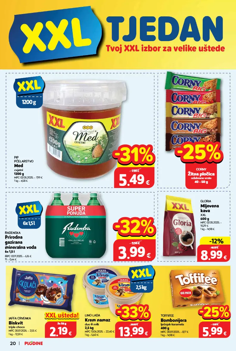 jaffa crvenka biskvit triple choco mpc 30.01.2026. = 2,55 € 1 kg = 12,59 € lino lada krem namaz duo ili milk 2,5 kg mpc 13.06.2025. = 22,40 € 1 kg = 5,60 € toffifee bombonijera lješnjak-karamela 400 g mpc 30.09.2025. = 8,17 € 1 kg = 14,98 € gloria mljevena kava xxl 600 g mpc 02.05.2025. = 10,29 € 1 kg = 14,98 € 8 8 . . 99 99 € 600 g -12% -12% 10.29 € top cijena! već od hit cijena! 2 2 . . 19 19 € 3x 58 g xxl ušteda! xxl ušteda! 5 5 . . 99 99 € 400 g 7.99 € -25% -25% radenska prirodna gazirana mineralna voda 6x 1,5 l mpc 03.11.2025. = 6,16 € 1 l = 0,44 € 3 3 . . 99 99 € 6x1,5 l 5.94 € -32% -32% top cijena! već od hit cijena! super prilika! 13 13 . . 99 99 € xxxxx samo u plodinama 20.99 € -33% -33% pip pčelarstvo med cvjetni 1200 g mpc 02.05.2025. = 7,99 € 1 kg = 4,58 € 5 5 . . 49 49 € 1200 g 7.99 € -31% -31% -25% -25% corny žitna pločica odabrane vrste 40 - 50 g 6x 1,5 l xxl 2,5 kg xxl 1200 g xxl 20