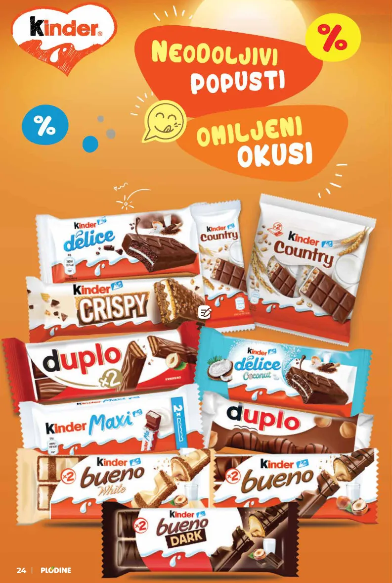 kinder čokoladno jaje classic ili lei s igračkom iznenađenja 20 g mpc 09.09.2025. = 1,60 € 1 kg = 64,50 € domaćica keksi preliveni čokoladom odabrane vrste mpc 09.07.2025. = 3,79 € 1 kg = 8,17 - 11,14 € dorina čokolada mlijeko, keks, riža ili noisette mpc 09.07.2025. = 4,89 € 1 kg = 11,96 - 13,59 € 1 1 . . 29 29 € 20 g -18% -18% 1.59 € 2 2 . . 45 45 € 220 - 300 g kraš životinjsko carstvo, tortica ili bananko mpc 09.07.2025. = 0,75 € top cijena! već od hit cijena! 0 0 . . 39 39 € 15 - 30 g već od već od top cijena! već od hit cijena! 2 2 . . 99 99 € 220 - 250 g super prilika! super prilika! milka praline hazelnut, good luck ili thank you 110 g mpc 09.07.2025. = 5,39 € 1 kg = 29,91 € loacker napolitanke tortina original ili triple chocolate 126 g mpc 18.06.2025. = 4,99 € 1 kg = 31,67 € kit kat čokolada double chocolate, lješnjak ili slana karamela 99 g mpc 06.10.2025. = 2,79 € 1 kg = 20,10 € milka keksi choco sticks, choco cow, choco grains, ili choco minis 112 - 150 g mpc 09.07.2025. = 2,39 € 1 kg = 11,93 - 15,98 € schmidt mozart kugle classic ili bijele 231 - 264 g mpc 24.11.2025. = 5,69 € 1 kg = 15,11 - 17,27 € 3 3 . . 29 29 € 110 g 4.99 € -34% -34% 3 3 . . 99 99 € 231 - 264 g 5.15 € -22% -22% 3 3 . . 99 99 € 126 g 4.99 € -20% -20% 1 1 . . 79 79 € 112 - 150 g 2.25 € -20% -20% 1 1 . . 99 99 € 99 g 2.79 € -28% -28% 38