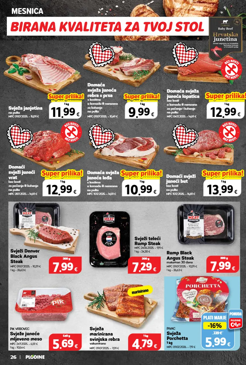 7 7 . . 99 99 € 300 g 7 7 . . 29 29 € 300 g svježi denver black angus steak mpc 09.07.2025. = 10,29 € 1 kg = 26,63 € svježa marinirana svinjska rebra vakumirano mpc 09.07.2025. = 7,09 € 4 4 . . 79 79 € 1 kg domaći svježi juneći vrat bez kosti za pečenje ili kuhanje na pultu mpc 28.11.2025. = 14,69 € svježa janjetina na pultu mpc 09.07.2025. = 15,09 € svježi teleći rump steak mpc 24.06.2025. = 9,19 € 1 kg = 24,30 € pik vrbovec svježe juneće mljeveno meso mpc 24.11.2025. = 6,59 € 1 kg = 10,54 € 5 5 . . 69 69 € 540 g domaća svježa juneća leđa s kostima u komadu ili narezana na pultu mpc 10.12.2025. = 14,59 € domaća svježa juneća rebra ili prsa s kostima u komadu ili narezana za kuhanje na pultu mpc 09.07.2025. = 10,49 € pivac svježa porchetta 1 kg mpc 09.02.2026. = 7,19 € rump black angus steak maturiran 30 dana mpc 09.07.2025. = 10,29 € 1 kg = 26,63 € 7 7 . . 99 99 € 300 g domaći svježi juneći but bez kosti na pultu mpc 10.12.2025. = 16,69 € domaća svježa juneća lopatica bez kosti u komadu ili narezana za pečenje i kuhanje na pultu mpc 04.12.2025. = 14,69 € plati manje 7.19 € -16% -16% 5 5 . . 99 99 € ponuda top cijena! već od hit cijena! 12 12 . . 99 99 € 1 kg super prilika! super prilika! top cijena! već od hit cijena! 10 10 . . 99 99 € 1 kg super prilika! super prilika! top cijena! već od hit cijena! 12 12 . . 99 99 € 1 kg super prilika! super prilika! top cijena! već od hit cijena! 13 13 . . 99 99 € 1 kg super prilika! super prilika! top cijena! već od hit cijena! 11 11 . . 99 99 € 1 kg super prilika! super prilika! top cijena! već od hit cijena! 9 9 . . 99 99 € 1 kg super prilika! super prilika! birana kvaliteta za tvoj stol mesnica b e z k o s t i b e z k o s t i b e z k o s t i b e z k o s t i b e z k o s t i b e z k o s t i marinirano 26 26