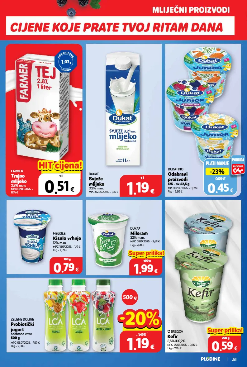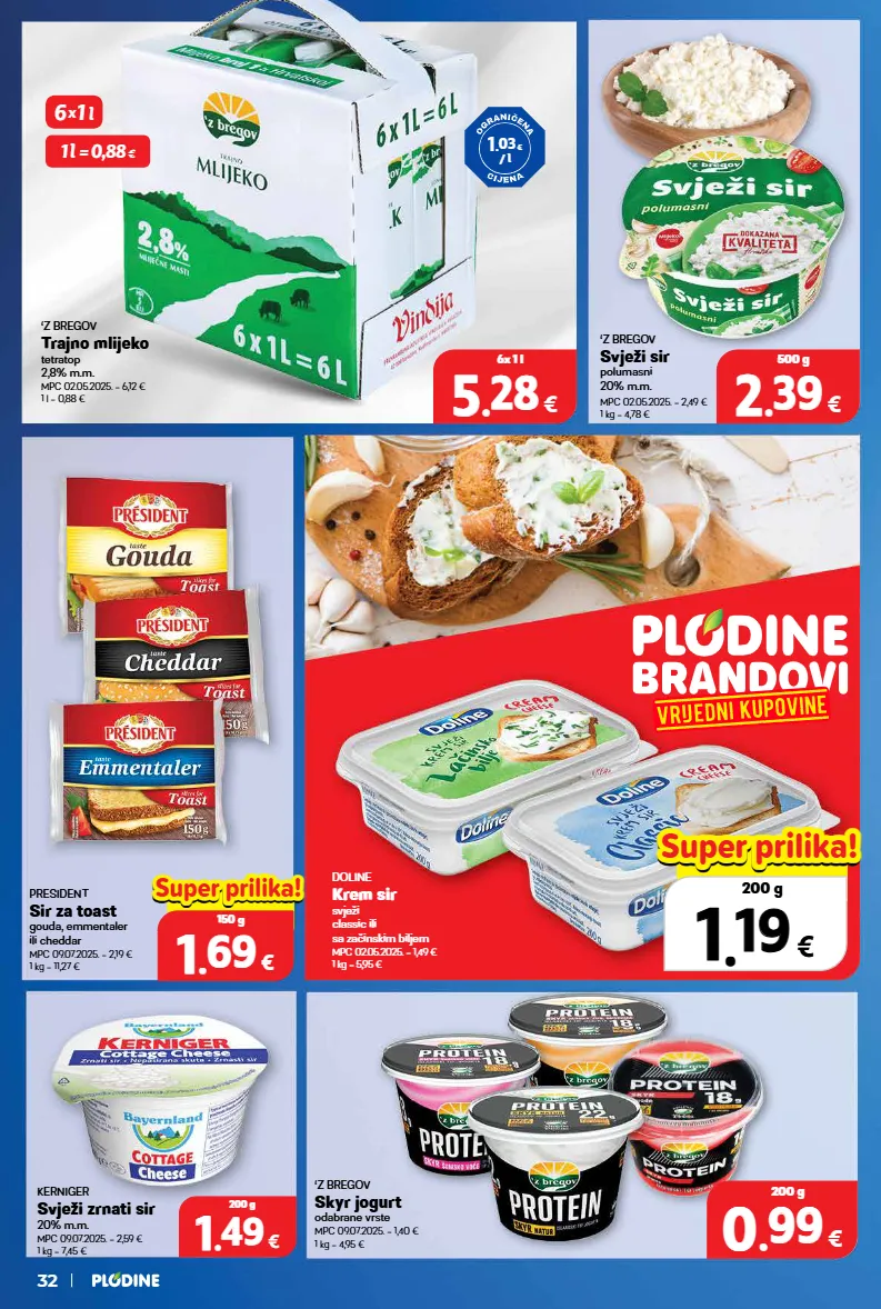 doline krem sir svježi classic ili sa začinskim biljem mpc 02.05.2025. = 1,49 € 1 kg = 5,95 € president sir za toast gouda, emmentaler ili cheddar mpc 09.07.2025. = 2,19 € 1 kg = 11,27 € kerniger svježi zrnati sir 20% m.m. mpc 09.07.2025. = 2,59 € 1 kg = 7,45 € 1 1 . . 49 49 € 200 g ‘z bregov svježi sir polumasni 20% m.m. mpc 02.05.2025. = 2,49 € 1 kg = 4,78 € 2 2 . . 39 39 € 500 g top cijena! već od hit cijena! 1 1 . . 19 19 € 200 g super prilika! super prilika! ‘z bregov trajno mlijeko tetratop 2,8% m.m. mpc 02.05.2025. = 6,12 € 1 l = 0,88 € 5 5 . . 28 28 € 6x 1 l 1 . 03 € / l ‘z bregov skyr jogurt odabrane vrste mpc 09.07.2025. = 1,40 € 1 kg = 4,95 € 0 0 . . 99 99 € 200 g 1 l = 0,88 € 6 x 1 l 32 top cijena! već od hit cijena! 1 1 . . 69 69 € 150 g super prilika! super prilika!