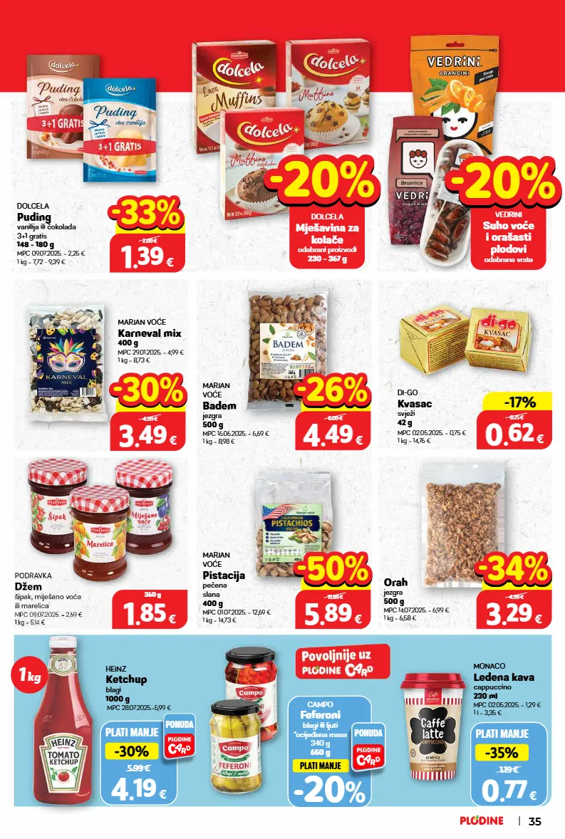 lino čokolino lješnjak instant žitne pahuljice s vitaminima i mineralima 1 kg mpc 09.07.2025. = 9,69 € dora3 ili antonelli croissant odabrane vrste 225 - 300 g mpc 09.07.2025. = 2,85 € 1 kg = 5,97 - 7,96 € 1 1 . . 79 79 € 225 - 300 g 2.65 € -32% -32% 5 5 . . 99 99 € 1 kg 8.49 € -29% -29% plati manje 5.39 € -14% -14% 4 4 . . 59 59 € ponuda nutella krem namaz plant based 350 g mpc 23.09.2025. = 5,39 € 1 kg = 13,11 € -25% -25% barcaffe instant kava classic, crema ili gold 100 - 200 g podravka čaj odabrane vrste mpc 10.11.2025. = 2,85 € barcaffe cappuccino classic, choco, vanilija ili irish 120 - 144 g mpc 09.07.2025. = 4,19 € 1 kg = 20,76 - 24,92 € top cijena! već od hit cijena! super prilika! 2 2 . . 99 99 € 120 - 144 g samo u plodinama 3.89 € -23% -23% top cijena! već od hit cijena! 1 1 . . 69 69 € 40 - 50 g već od već od top cijena! već od hit cijena! super prilika! 6 6 . . 99 99 € 120 - 144 g samo u plodinama 8.99 € -22% -22% 400 g barcaffe mljevena kava 400 g mpc 29.11.2025. = 8,99 € 1 kg = 17,48 € 36