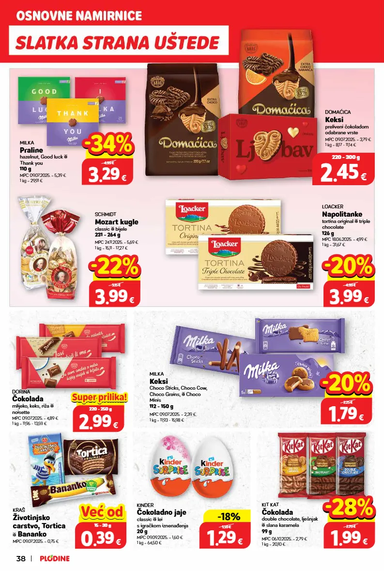 -25% -25% poco loco tortilja čips i umak odabrani proizvodi 200 - 315 g alpro biljni napitak soja, soja barista ili soja bez šećera 1 l mpc 13.10.2025. = 3,10 € 1 1 . . 99 99 € 1 kg 2.99 € -33% -33% ricola bomboni original, mentol, limun- menta ili malina 75 g mpc 09.07.2025. = 2,79 € 1 kg = 2,65 € valor čokolada tamna odabrane vrste 100 g mpc 24.09.2025. = 2,99 € 1 kg = 22,90 € proteini.si proteinske pločice odabrane vrste 50 - 55 g mpc 02.05.2025. = 1,69 € 1 kg = 17,27 - 19,00 € bake rolls bake rolls odabrane vrste 80 g mpc 07.07.2025. = 0,89 € 1 kg = 6,13 € smoki flips odabrani proizvodi mpc 09.07.2025. = 1,49 € orbit ili airwaves žvakaće gume odabrane vrste 64 g mpc 09.07.2025. = 3,99 € 1 kg = 45,16 € top cijena! već od hit cijena! 0 0 . . 36 36 € 40 - 130 g već od već od 2 2 . . 89 89 € 64 g 3.69 € -21% -21% 0 0 . . 95 95 € 64 g 1.35 € -29% -29% 1 1 . . 99 99 € 75 g 2.65 € -24% -24% kraš napolitanke odabrane vrste 420 g mpc 09.07.2025. = 3,45 € 1 kg = 5,45 € top cijena! već od hit cijena! super prilika! 2 2 . . 29 29 € 420 g samo u plodinama 3.19 € -28% -28% top cijena! već od hit cijena! super prilika! 2 2 . . 29 29 € 420 g samo u plodinama 2.99 € -23% -23% 37 top cijena! već od hit cijena! super prilika! 0 0 . . 49 49 € xxxxx samo u plodinama 0.80 € -38% -38%