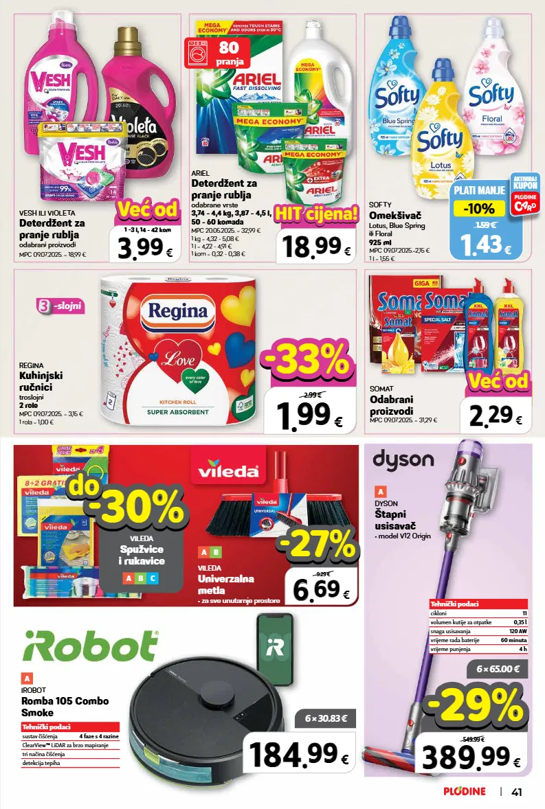 a dyson štapni usisavač • model v12 origin vesh ili violeta deterdžent za pranje rublja odabrani proizvodi mpc 09.07.2025. = 18,99 € softy omekšivač lotus, blue spring ili floral 925 ml plati manje 1.59 € -10% -10% 1 1 . . 43 43 € aktiviraj kupon mpc 09.07.2025.=2,15 € 1 l = 1,55 € regina kuhinjski ručnici troslojni 2 role mpc 09.07.2025. = 3,15 € 1 rola = 1,00 € somat odabrani proizvodi mpc 09.07.2025. = 31,29 € top cijena! već od hit cijena! 3 3 . . 99 99 € 1 -3 l, 14 - 42 kom već od već od top cijena! već od hit cijena! 2 2 . . 29 29 € već od već od 6 × 65.00 € 6 × 30.83 € a irobot romba 105 combo smoke tehnički podaci sustav čišćenja 4 faze s 4 razine clearview™ lidar za brzo mapiranje tri načina čišćenja detekcija tepiha 6 6 . . 69 69 € 9.29 € -27% -27% ariel deterdžent za pranje rublja odabrane vrste 3,74 - 4,4 kg, 3,87 - 4,5 l, 50 - 60 komada mpc 20.05.2025. = 32,99 € 1 kg = 4,32 - 5,08 € 1 l = 4,22 - 4,91 € 1 kom = 0,32 - 0,38 € top cijena! već od hit cijena! 18 18 . . 99 99 € hit hit cijena! cijena! 1 1 . . 99 99 € 650 ml 2.99 € -33% -33% 389 389 . . 99 99 € 549.99 € -29% -29% 184 184 . . 99 99 € -slojni 3 vileda spužvice i rukavice -30% -30% do do a b c pranja 80 41 tehnički podaci cikloni 11 volumen kutije za otpatke 0,35 l snaga usisavanja 120 aw vrijeme rada baterije 60 minuta vrijeme punjenja 4 h a b vileda univerzalna metla • za sve unutarnje prostore