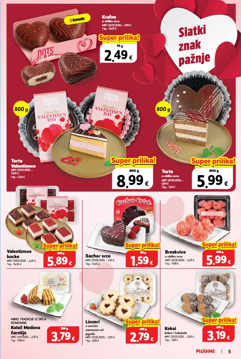 torta valentinovo mpc 09.02.2025. = 12,99 € 1 kg = 11,24 € torta u obliku srca mpc 02.05.2025. = 5,99 € 1 kg = 7,49 € top cijena! već od hit cijena! 5 5 . . 99 99 € 800 g super prilika! super prilika! 8 8 . . 99 99 € 800 g super prilika! super prilika! sacher srce mpc 02.05.2025. = 1,33 € 1 kg = 14,45 € top cijena! već od hit cijena! 1 1 . . 59 59 € 110 g super prilika! super prilika! valentinovo kocke mpc 09.02.2025. = 6,49 € 1 kg = 16,36 € top cijena! već od hit cijena! 5 5 . . 89 89 € 360 g super prilika! super prilika! breskvice u obliku srca mpc 02.05.2025. = 6,39 € 1 kg = 11,98 € top cijena! već od hit cijena! 5 5 . . 99 99 € 500 g super prilika! super prilika! linzeri s voćnim namazom od jagode mpc 02.05.2025. = 3,29 € 1 kg = 6,98 € top cijena! već od hit cijena! 2 2 . . 79 79 € 400 g super prilika! super prilika! krafne u obliku srca mpc 02.02.2026. = 2,99 € 1 kg = 26,21 € keksi kokos i čokolada mpc 02.05.2025. = 3,39 € 1 kg = 7,98 € top cijena! već od hit cijena! 3 3 . . 19 19 € 400 g super prilika! super prilika! miris tradicije iz srca domovine kolač medena čarolija mpc 14.10.2025. = 4,39 € 1 kg = 11,84 € 3 3 . . 79 79 € 350 g 800 g 800 g top cijena! već od hit cijena! 2 2 . . 49 49 € 95 g super prilika! super prilika! 2 komada slatki znak pažnje 5
