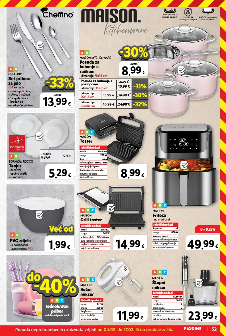 4 4 . . 49 49 € • 1,2 l 9.99 € 9 9 . . 99 99 € 16.99 € -41% -41% 78 78 . . 99 99 € 42x31,2x9,4 cm 34x6,3 cm 42x28x7,5 cm top cijena! već od hit cijena! super prilika! 52 52 . . 99 99 € samo u plodinama 75.99 € -30% -30% 6 × 8.83 € 6 × 13.17 € top cijena! već od hit cijena! super prilika! 65 65 . . 99 99 € samo u plodinama 89.99 € -26% -26% 6 × 11.00 € top cijena! već od hit cijena! super prilika! 44 44 . . 99 99 € samo u plodinama 59.99 € -25% -25% 6 × 7.50 € 10 10 . . 99 99 € 16.99 € -35% -35% a b okrugli kalup za pečenje • okrugli • materijal: emajl a b pravokutni kalup za pečenje • emajl 6 6 . . 49 49 € 11.99 € -45% -45% 6 6 . . 99 99 € 12.99 € -46% -46% ponuda neprehrambenih proizvoda vrijedi od 11.02. do 24.02. ili do prodaje zaliha. 700 w 650 w 150 w 700 w 20 l 12 - dijelni set 44 a b tognana posuda za kuhanje kave • materijal: ugljični čelik, bakelitna drška • zapremnina: cca 440 ml a b emerio mikrovalna pećnica • crne boje • sa 6 različitih funkcija i funkcijom tajmera • sa zvučnim signalom a b c esperanza toster • preklopni • model tkt004w • napon: 240 v • led indikator a b cheffinger set posuda za kuhanje • sastoji se od posuda za kuhanje promjera 16, 18, 20 i 24 cm, posude za kuhanje s jednom ručkom 16 cm i tave promjera 24 cm sa staklenim poklopcima a b pekač s poklopcem • emajl a b esperanza mesoreznica • model ekm018k • debljina rezanja od 0 do 15 mm • ø oštrice od nehrđajućeg čelika: 19 cm a b ufesa pekač kruha • model bm6000 • 14 unaprijed instaliranih programa • funkcija održavanja topline do 1 h