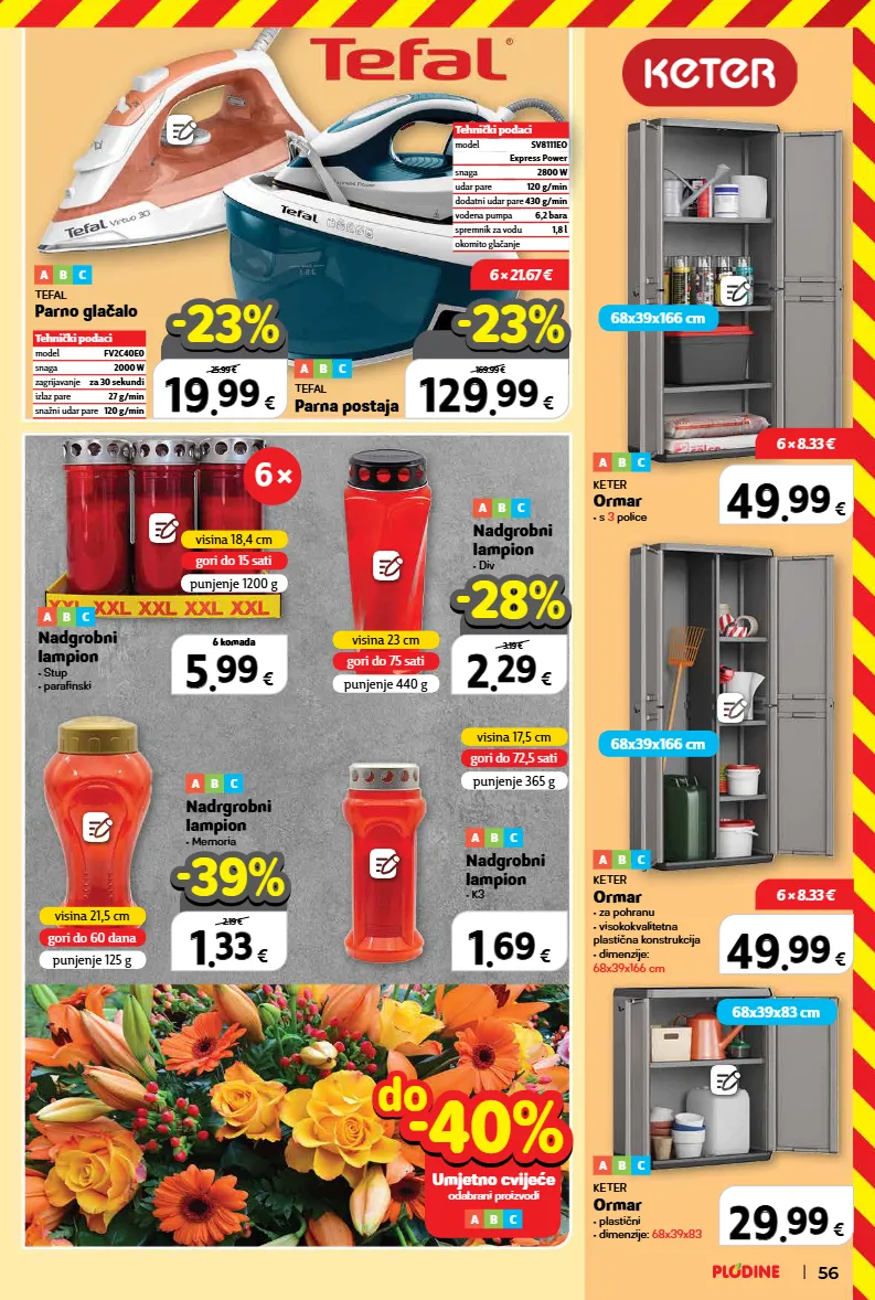 49 49 . . 99 99 € 29 29 . . 99 99 € 49 49 . . 99 99 € 5 5 . . 99 99 € 6 komada 1 1 . . 69 69 € visina 23 cm gori do 75 sati punjenje 440 g visina 21,5 cm gori do 60 dana punjenje 125 g visina 17,5 cm gori do 72,5 sati punjenje 365 g visina 18,4 cm gori do 15 sati punjenje 1200 g 6 × 21.67 € top cijena! već od hit cijena! super prilika! 129 129 . . 99 99 € samo u plodinama 169.99 € -23% -23% 2 2 . . 29 29 € komad 3.19 € -28% -28% 1 1 . . 33 33 € 2.19 € -39% -39% 6 × 8.33 € 6 × 8.33 € 68x39x83 cm 68x39x166 cm 68x39x166 cm 56 6 × nadgrobni lampion • stup • parafinski a b c nadgrobni lampion • div a b c nadrgrobni lampion • memoria a b c nadgrobni lampion • k3 a b c umjetno cvijeće odabrani proizvodi do do -40% -40% a b c a b c tefal parno glačalo tehnički podaci model fv2c40e0 snaga 2000 w zagrijavanje za 30 sekundi izlaz pare 27 g/min snažni udar pare 120 g/min tefal parna postaja a b c tehnički podaci model sv8111eo express power snaga 2800 w udar pare 120 g/min dodatni udar pare 430 g/min vodena pumpa 6,2 bara spremnik za vodu 1,8 l okomito glačanje top cijena! već od hit cijena! super prilika! 19 19 . . 99 99 € samo u plodinama 25.99 € -23% -23% keter ormar • za pohranu • visokokvalitetna plastična konstrukcija • dimenzije: 68x39x166 cm a b c keter ormar • s 3 police a b c a b c keter ormar • plastični • dimenzije: 68x39x83