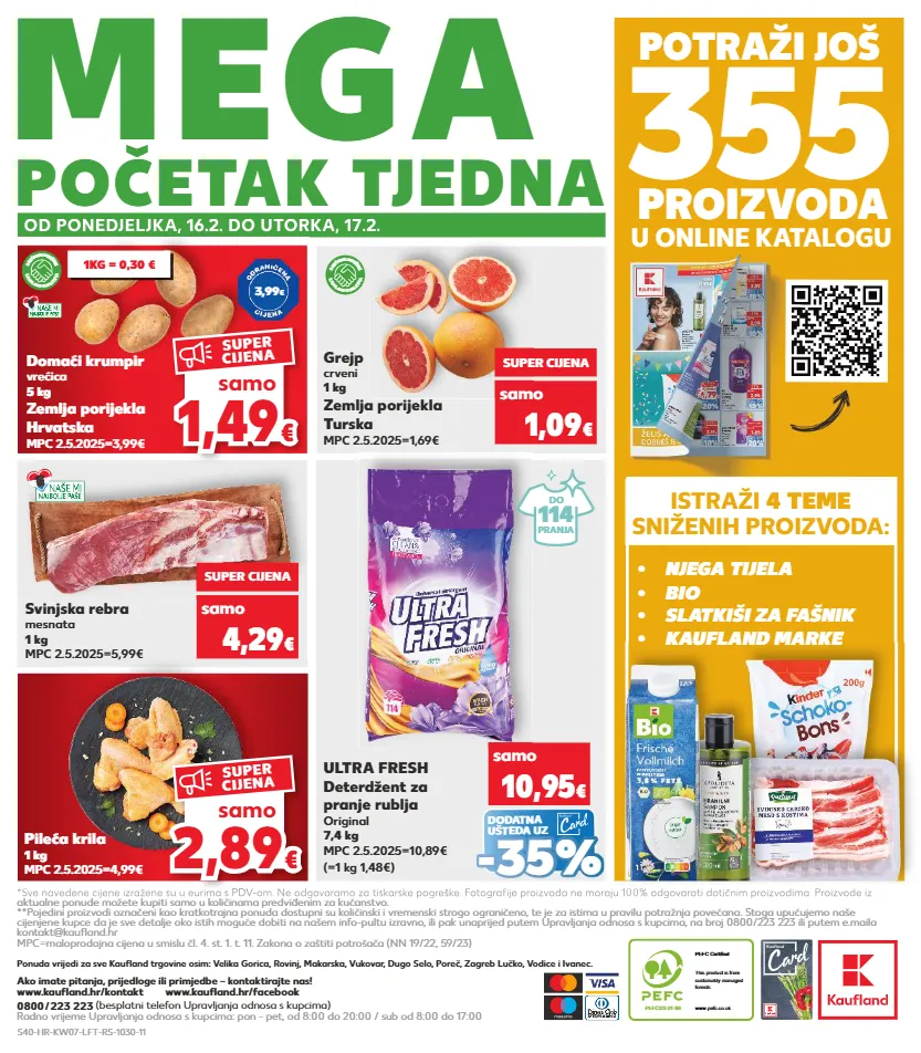 kratkotrajna ponuda kratkotrajna ponuda pefc/23-31-86 pefc certified this product is from sustainably managed forests www.pefc.co.uk 355 u online katalogu potraži još proizvoda istraži 4 teme sniženih proizvoda: od ponedjeljka, 16.2. do utorka, 17.2. početak tjedna mega *sve navedene cijene izražene su u eurima s pdv-om. ne odgovaramo za tiskarske pogreške. fotografije proizvoda ne moraju 100% odgovarati dotičnim proizvodima. proizvode iz aktualne ponude možete kupiti samo u količinama predviđenim za kućanstvo. **pojedini proizvodi označeni kao kratkotrajna ponuda dostupni su količinski i vremenski strogo ograničeno, te je za istima u pravilu potražnja povećana. stoga upućujemo naše cijenjene kupce da je sve detalje oko istih moguće dobiti na našem info-pultu izravno, ili pak unaprijed putem upravljanja odnosa s kupcima, na broj 0800/223 223 ili putem e.maila kontakt@kaufland.hr mpc=maloprodajna cijena u smislu čl. 4. st. 1. t. 11. zakona o zaštiti potrošača (nn 19/22, 59/23) 0800 / 223 223 (besplatni telefon upravljanja odnosa s kupcima) radno vrijeme upravljanja odnosa s kupcima: pon - pet, od 8:00 do 20:00 / sub od 8:00 do 17:00 ako imate pitanja, prijedloge ili primjedbe – kontaktirajte nas! www.kaufland.hr/kontakt www.kaufland.hr/facebook ponuda vrijedi za sve kaufl and trgovine osim: velika gorica, rovinj, makarska, vukovar, dugo selo, poreč, zagreb lučko, vodice i ivanec. od ponedjeljka, 16.2. do utorka, 17.2. od ponedjeljka, 16.2. do utorka, 17.2. 114 pranja do • njega tijela • kaufland marke • slatkiši za fašnik • bio domaći krumpir vrećica 5 kg zemlja porijekla hrvatska mpc 2.5.2025=3,99€ grejp crveni 1 kg zemlja porijekla turska mpc 2.5.2025=1,69€ svinjska rebra mesnata 1 kg mpc 2.5.2025=5,99€ pileća krila 1 kg mpc 2.5.2025=4,99€ k a u f l a n d k v a l i t e t a o b e ć a n j e s v j e ž i n e k a u f l a n d k v a l i t e t a o b e ć a n j e s v j e ž i n e samo super cijena 1,09 € samo super cijena 4,29 € (=1 kg 1,48€) ultra fresh deterdžent za pranje rublja original 7,4 kg mpc 2.5.2025=10,89€ samo 10,95 € - - 35 % 35 % dodatna ušteda uz 3,99 € 1kg = 0,30 € *sve navedene cijene izražene su u eurima s pdv-om. ne odgovaramo za tiskarske pogreške. fotografije proizvoda ne moraju 100% odgovarati dotičnim proizvodima. proizvode iz 2,8 9 2,89 € € samo super cijena 1,4 9 1,49 € € samo super cijena s40-hr-kw07-lft-rs-1030-11