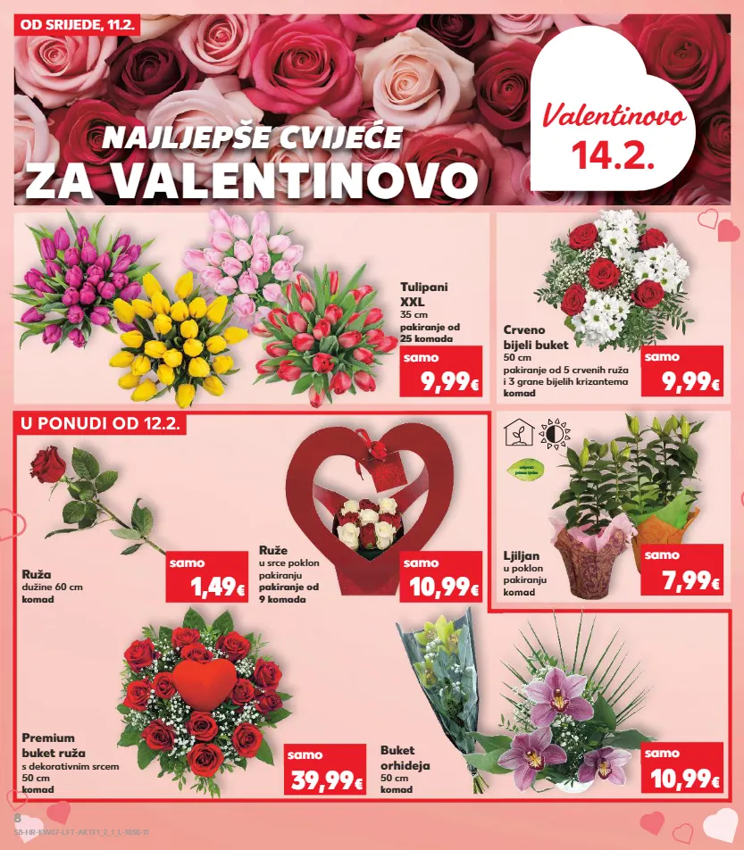 kratkotrajna ponuda samo kratkotrajna ponuda samo kratkotrajna ponuda samo kratkotrajna ponuda samo samo kratkotrajna ponuda vrijedi 13. i 14.2. vrijedi 13. i 14.2. 2,4 5 2,45 € € samo super cijena od srijede, 11.2. valentinovo 14.2. dodatna ušteda uz dodatna ušteda uz (=1 kg 49,94€) lindt lindor bombonijera srce 160 g mpc 16.01.2026=7,99€ kratkotrajna ponuda samo 7,99 € sa o 7,99 samo 7,99 samo 7,99 samo 7,99 samo samo € o € o - - 10% 10% - - 10% 10% kraš bombonijera bajadera 300 g mpc 2.5.2025=10,89€ (=1 kg 26,64€) badel liker od kave ili bajadere 16% ili 22% alkohola 0,7 l mpc15.10.2025=19,99€ (=1 l 25,70€) -10% 17,99 € 19,99 € super cijena 7,99 € samo ferrero rocher čokoladni desert s lješnjakom 200 g mpc 2.5.2025=6,49€ (=1 kg 27,25€) -24% 5,45 € 7,19 € -35% 2,49 € 3,89 € (=1 kg 9,85€) volim te mliječna čokolada razne vrste 253 g mpc 2.5.2025=2,99€ (=1 kg od 8,17 do 11,14€) domaćica čajno pecivo odabrane vrste 220-300 g mpc 2.5.2025=3,29€ kratkotrajna ponuda 4,89 € samo (=1 kg 9,78€) torta mađarica u obliku srca 500 g mpc 2.5.2025=4,35€ jagoda 400 g zemlja porijekla španjolska mpc 28.1.2026=4,99€ (=1 kg 8,73€) samo super cijena 3,49 € odaberi srcem daruj s ljubavlju s10-hr-kw07-lft-aktf1_2_3_l-1030-11 10