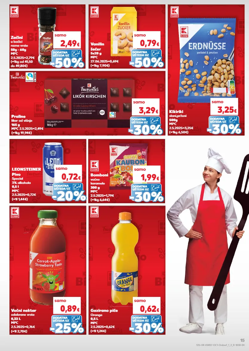 samo samo samo 1,99 € 0,72 € 0,89 € samo samo samo 0,79 € 3,25 € 0,62 € samo 3,29 € (=1kg 7,90€) (=1kg 6,50€) (=1l 1,24€) vanilin šećer 5x20 g mpc 27.06.2025=0,69€ kikiriki slani,prženi 500g mpc 2.5.2025=3,25€ gazirano piće orange 0,5 l mpc 2.5.2025=0,62€ (=1kg 6,64€) (=1l 1,44€) (=1l 2,70€) bomboni voćne karamele 300 g mpc 2.5.2025=1,79€ leonsteiner pivo special 3% alkohola 0,5 l mpc 2.5.2025=0,72€ voćni nektar odabrane vrste 0,33 l mpc 2.5.2025=0,76€ (=1kg 19,94€) praline liker od višnje 165 g mpc 2.5.2025=2,49€ samo 2,49 € (=1kg od 41,50 do 49,80€) začini u bočici razne vrste 50g - 60g mpc 2.5.2025=2,79€ - - 50% 50% dodatna ušteda uz - - 30% 30% - - 20 % 20 % - - 25 % 25 % dodatna ušteda uz dodatna ušteda uz dodatna ušteda uz - - 50% 50% - - 30% 30% - - 30% 30% dodatna ušteda uz dodatna ušteda uz dodatna ušteda uz - - 30% 30% dodatna ušteda uz s15-hr-kw07-oc1-online1_1_2_r-1030-04 15