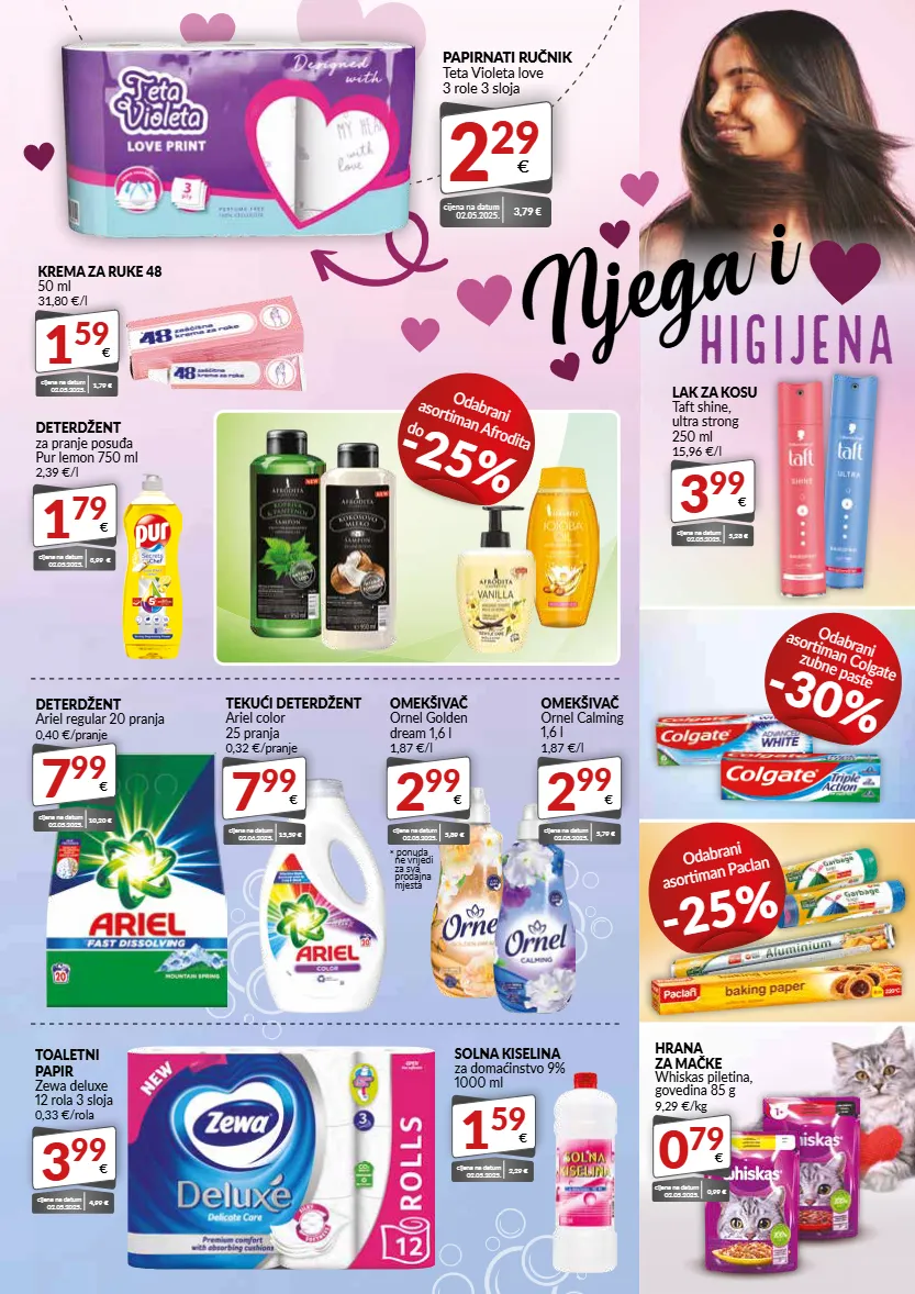 papirnati ručnik teta violeta love 3 role 3 sloja 2 29 € cijena na datum 02.05.2025. 3,79 € 3 99 € toaletni papir zewa deluxe 12 rola 3 sloja 0,33 €/rola cijena na datum 02.05.2025. 4,99 € 1 59 € solna kiselina za domaćinstvo 9% 1000 ml cijena na datum 02.05.2025. 2,29 € 1 59 € krema za ruke 48 50 ml 31,80 €/l cijena na datum 02.05.2025. 1,79 € 3 99 € lak za kosu taft shine, ultra strong 250 ml 15,96 €/l cijena na datum 02.05.2025. 5,28 € 1 79 € deterdžent za pranje posuđa pur lemon 750 ml 2,39 €/l cijena na datum 02.05.2025. 3,99 € njega i higijena 2 99 € omekšivač ornel calming 1,6 l 1,87 €/l cijena na datum 02.05.2025. 5,79 € * ponuda ne vrijedi za sva prodajna mjesta 2 99 € omekšivač ornel golden dream 1,6 l 1,87 €/l cijena na datum 02.05.2025. 5,89 € 7 99 € tekući deterdžent ariel color 25 pranja 0,32 €/pranje cijena na datum 02.06.2025. 15,59 € 7 99 € deterdžent ariel regular 20 pranja 0,40 €/pranje cijena na datum 02.05.2025. 10,20 € odabrani asortiman afrodita -25% do odabrani asortiman colgate zubne paste -30% 0 79 € hrana za mačke whiskas piletina, govedina 85 g 9,29 €/kg cijena na datum 02.05.2025. 0,99 € odabrani asortiman paclan -25%