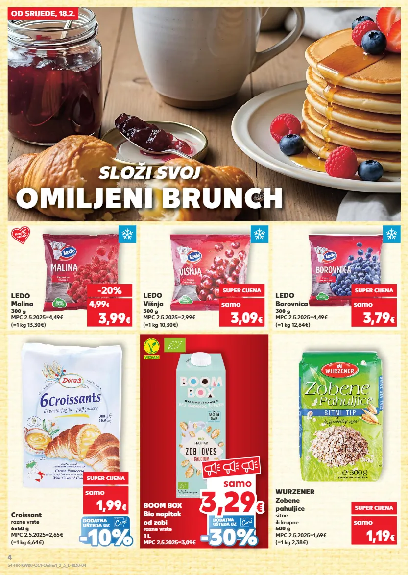 kratkotrajna ponuda samo kratkotrajna ponuda kratkotrajna ponuda kratkotrajna ponuda kratkotrajna ponuda ukusna mesna plata! ledo borovnica 300 g mpc 2.5.2025=4,49€ (=1 kg 12,64€) ledo malina 300 g mpc 2.5.2025=4,49€ (=1 kg 13,30€) -20% 3,99 € 4,99 € ledo višnja 300 g mpc 2.5.2025=2,99€ (=1 kg 10,30€) samo super cijena 3,09 € wurzener zobene pahuljice sitne ili krupne 500 g mpc 2.5.2025=1,69€ (=1 kg 2,38€) samo super cijena 1,19 € samo super cijena 3,79 € dodatna ušteda uz (=1 kg 6,64€) croissant razne vrste 6x50 g mpc 2.5.2025=2,65€ samo super cijena 1,99 € - - 10% 10% boom box bio napitak od zobi razne vrste 1 l mpc 2.5.2025=3,09€ samo dodatna ušteda uz - - 30% 30% 3,29 3,29 € € složi svoj omiljeni brunch od srijede, 18.2. s4-hr-kw08-oc1-online1_2_3_l-1030-04 4