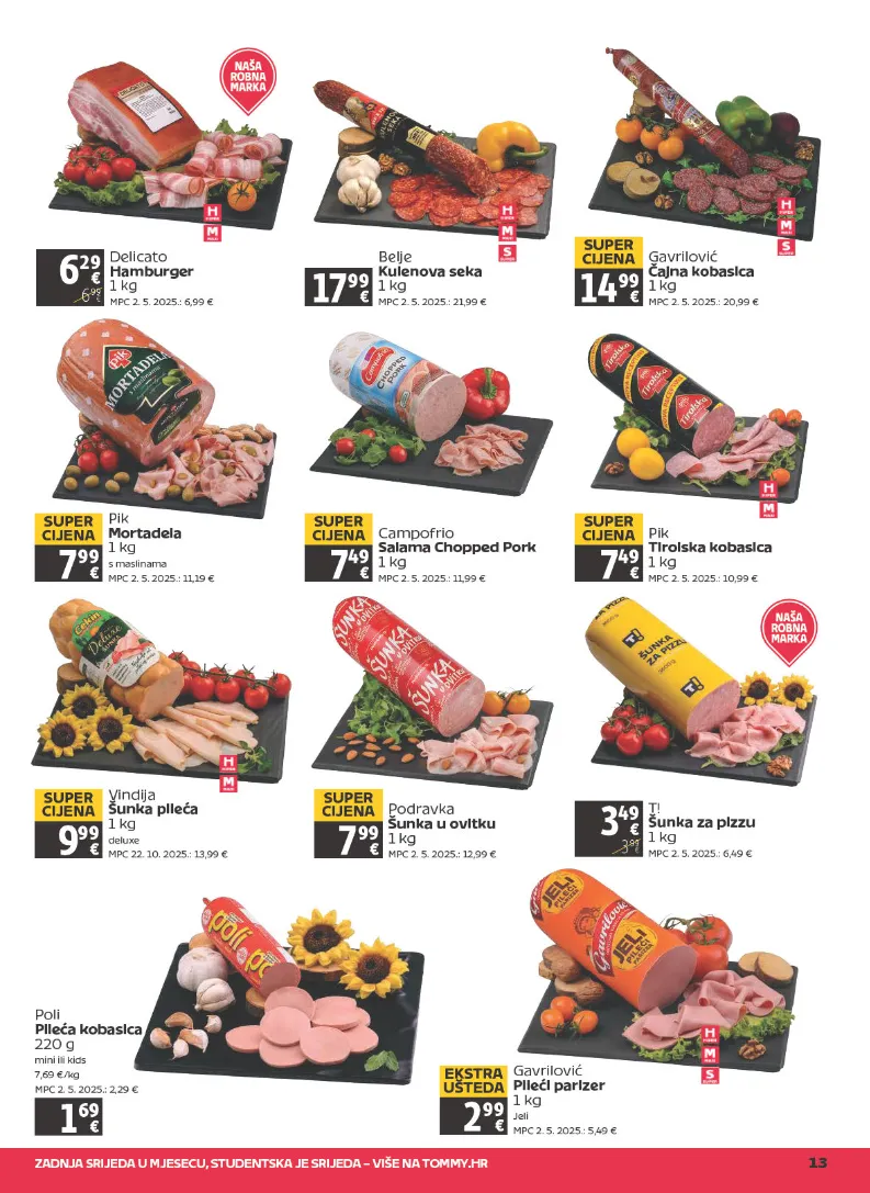 Z A D N J A S RI J E D A U M J E S E C U, S T U D E N T S K A J E S RI J E D A – VI Š E N A T O M M Y. H R 1 3 B elj e K ul e n o v a s e k a 1 k g M P C 2. 5. 2 0 2 5.: 2 1, 9 9 € 17 9 9 G a vril o vi ć Č aj n a k o b a si c a 1 k g M P C 2. 5. 2 0 2 5.: 2 0, 9 9 € 1 4 9 9 S U P E R CI J E N A 6 2 9 6 9 9 D eli c at o H a m b u r g e r 1 k g M P C 2. 5. 2 0 2 5.: 6, 9 9 € Vi n dij a Š u n k a pil e ć a 1 k g d el u x e M P C 2 2. 1 0. 2 0 2 5.: 1 3, 9 9 € 9 9 9 S U P E R CI J E N A P o dr a v k a Š u n k a u o vi t k u 1 k g M P C 2. 5. 2 0 2 5.: 1 2, 9 9 € 7 9 9 S U P E R CI J E N A Pi k M o r t a d el a 1 k g s m a sli n a m a M P C 2. 5. 2 0 2 5.: 1 1, 1 9 € 7 9 9 S U P E R CI J E N A C a m p ofri o S al a m a C h o p p e d P o r k 1 k g M P C 2. 5. 2 0 2 5.: 1 1, 9 9 € 7 4 9 S U P E R CI J E N A Pi k Ti r ol s k a k o b a si c a 1 k g M P C 2. 5. 2 0 2 5.: 1 0, 9 9 € 7 4 9 S U P E R CI J E N A 3 4 9 3 9 9 T! Š u n k a z a pi z z u 1 k g M P C 2. 5. 2 0 2 5.: 6, 4 9 € G a vril o vi ć Pil e ći p a ri z e r 1 k g J eli M P C 2. 5. 2 0 2 5.: 5, 4 9 € 2 9 9 E K S T R A U Š T E D A P oli Pil e ć a k o b a si c a 2 2 0 g mi ni ili ki d s 7, 6 9 € / k g M P C 2. 5. 2 0 2 5.: 2, 2 9 € 1 6 9