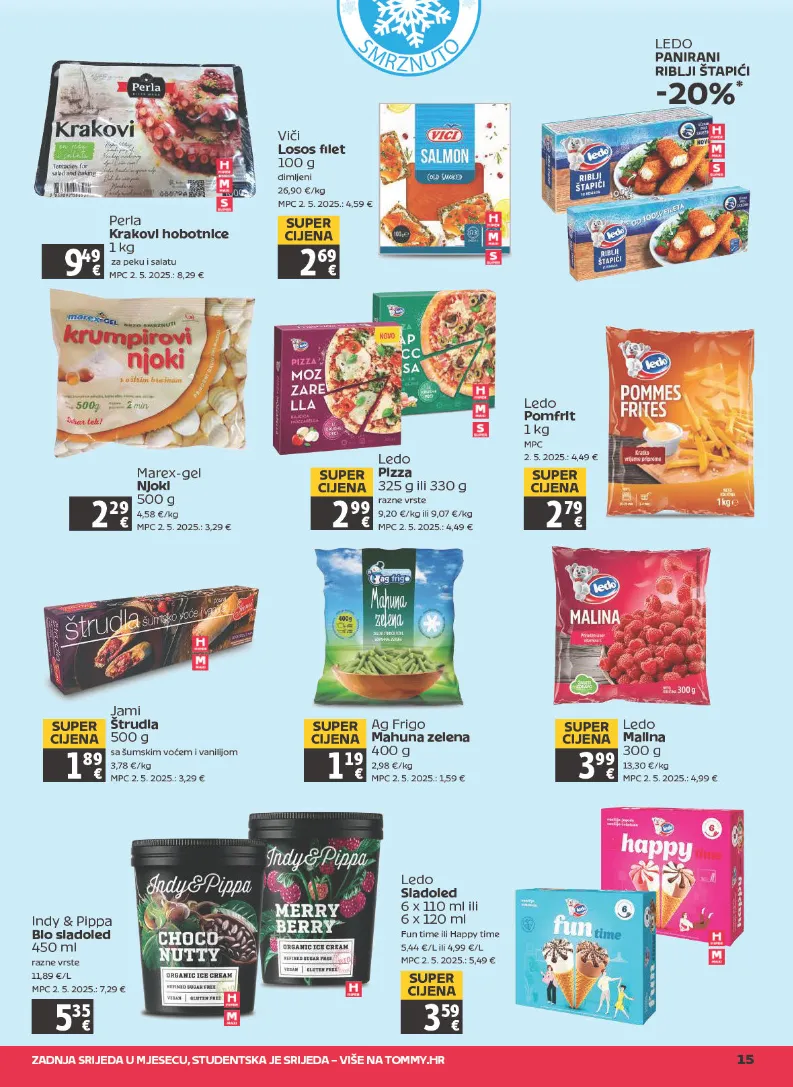 Z A D N J A S RI J E D A U M J E S E C U, S T U D E N T S K A J E S RI J E D A – VI Š E N A T O M M Y. H R 1 5 S M R Z N U T O P erl a K r a k o vi h o b o t ni c e 1 k g z a p e k u i s al at u M P C 2. 5. 2 0 2 5.: 8, 2 9 € 9 4 9 M ar e x - g el Nj o ki 5 0 0 g 4, 5 8 € / k g M P C 2. 5. 2 0 2 5.: 3, 2 9 € 2 2 9 L e d o Pi z z a 3 2 5 g ili 3 3 0 g r a z n e vr st e 9, 2 0 € / k g ili 9, 0 7 € / k g M P C 2. 5. 2 0 2 5.: 4, 4 9 € 2 9 9 S U P E R CI J E N A 2 7 9 S U P E R CI J E N A L e d o P o m f ri t 1 k g M P C 2. 5. 2 0 2 5.: 4, 4 9 € J a mi Š t r u dl a 5 0 0 g s a š u m s ki m v o ć e m i v a nilij o m 3, 7 8 € / k g M P C 2. 5. 2 0 2 5.: 3, 2 9 € 1 8 9 S U P E R CI J E N A A g Fri g o M a h u n a z el e n a 4 0 0 g 2, 9 8 € / k g M P C 2. 5. 2 0 2 5.: 1, 5 9 € 1 1 9 S U P E R CI J E N A L e d o M ali n a 3 0 0 g 1 3, 3 0 € / k g M P C 2. 5. 2 0 2 5.: 4, 9 9 € 3 9 9 S U P E R CI J E N A I n d y & Pi p p a Bi o sl a d ol e d 4 5 0 ml r a z n e vr st e 1 1, 8 9 € / L M P C 2. 5. 2 0 2 5.: 7, 2 9 € 5 35 L e d o Sl a d ol e d 6 x 1 1 0 ml ili 6 x 1 2 0 ml F u n ti m e ili H a p p y ti m e 5, 4 4 € / L ili 4, 9 9 € / L M P C 2. 5. 2 0 2 5.: 5, 4 9 € 3 5 9 S U P E R CI J E N A L E D O P A NI R A NI RI B L JI Š T A PI ĆI - 2 0 % * Vi či L o s o s fil e t 1 0 0 g di mlj e ni 2 6, 9 0 € / k g M P C 2. 5. 2 0 2 5.: 4, 5 9 € 2 6 9 S U P E R CI J E N A