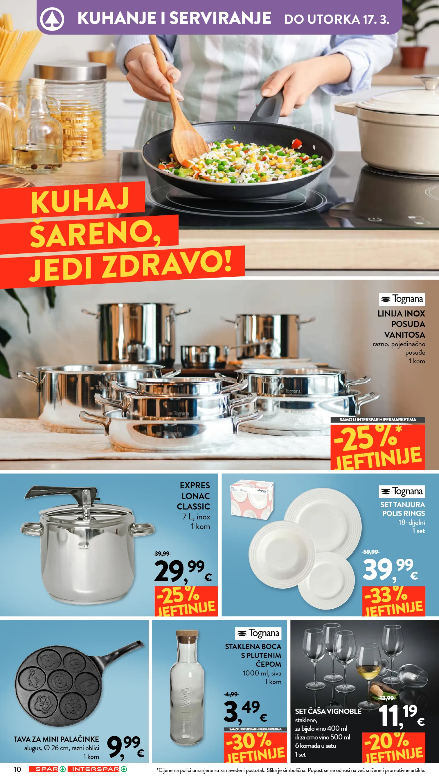 staklena boca s plutenim čepom 1000 ml, siva 1 kom 3 , 49 € 4,99 -30 % jeftinije tava za mini palačinke alugus, ø 26 cm, razni oblici 1 kom set čaša vignoble staklene, za bijelo vino 400 ml ili za crno vino 500 ml 6 komada u setu 1 set 11 , 19 € 13,99 -20 % jeftinije -25 % * jeftinije set tanjura polis rings 18-dijelni 1 set 39 , 99 € 59,99 -33 % jeftinije expres lonac classic 7 l, inox 1 kom 29 , 99 € 39,99 -25 % jeftinije linija inox posuđa vanitosa razno, pojedinačno posuđe 1 kom samo u interspar hipermarketima *cijene na polici umanjene su za navedeni postotak. slika je simbolična. popust se ne odnosi na već snižene i promotivne artikle. 9 , 99 € kuhaj šareno, jedi zdravo! samo u interspar hipermarketima 10 kuhanje i serviranje do utorka 17. 3.