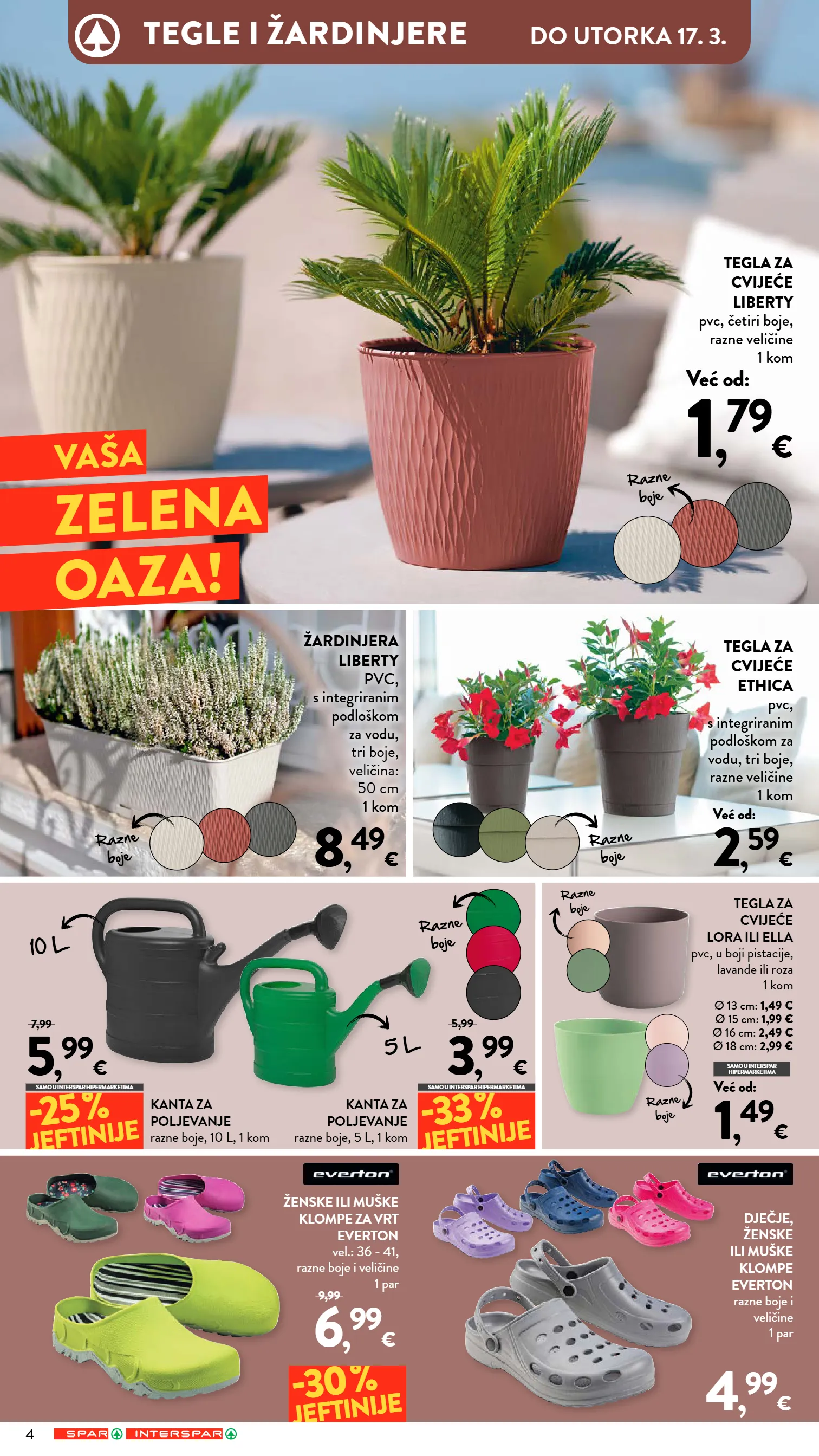 tegla za cvijeće liberty pvc, četiri boje, razne veličine 1 kom 1 , 79 € već od: tegla za cvijeće lora ili ella pvc, u boji pistacije, lavande ili roza 1 kom tegla za cvijeće ethica pvc, s integriranim podloškom za vodu, tri boje, razne veličine 1 kom 2 , 59 € već od: 4 , 99 € dječje, ženske ili muške klompe everton razne boje i veličine 1 par ženske ili muške klompe za vrt everton vel.: 36 - 41, razne boje i veličine 1 par kanta za poljevanje razne boje, 10 l, 1 kom žardinjera liberty pvc, s integriranim podloškom za vodu, tri boje, veličina: 50 cm 1 kom 8 , 49 € 6 , 99 € 9,99 -30 % jeftinije 5 , 99 € 7,99 -25 % jeftinije samo u interspar hipermarketima 3 , 99 € 5,99 -33 % jeftinije samo u interspar hipermarketima razne boje razne boje razne boje 10 l 5 l razne boje razne boje kanta za poljevanje razne boje, 5 l, 1 kom ø 13 cm: 1,49 € ø 15 cm: 1,99 € ø 16 cm: 2,49 € ø 18 cm: 2,99 € razne boje samo u interspar hipermarketima 1 , 49 € već od: 4 tegle i žardinjere do utorka 17. 3. vaša zelena oaza!