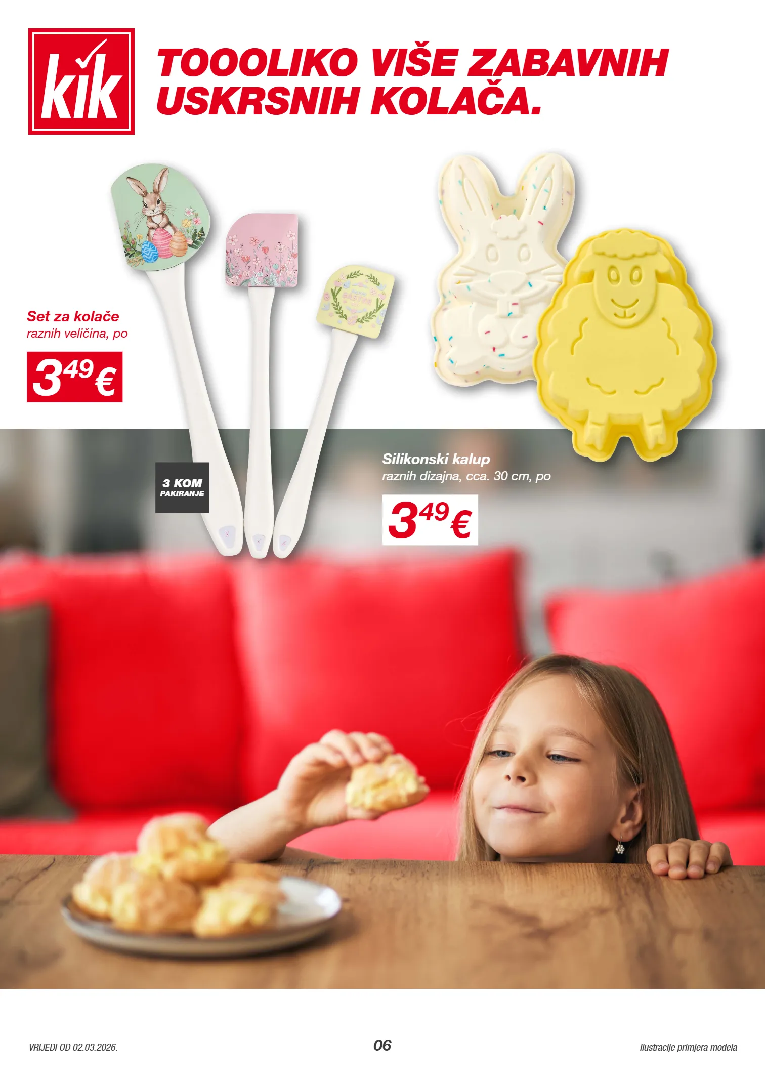 1213928 1213895 06 Ilustracije primjera modela VRIJEDI OD 02.03.2026. 3 49 € raznih veličina, po Set za kolače 3 49 € raznih dizajna, cca. 30 cm, po Silikonski kalup 3 KOM PAKIRANJE TOOOLIKO VIŠE ZABAVNIH USKRSNIH KOLAČA.