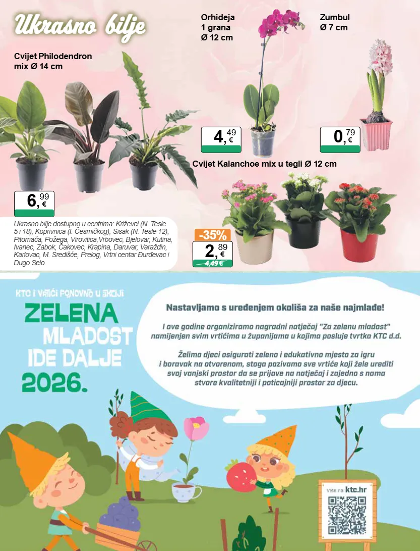 ukrasno bilje dostupno u centrima: križevci (n. tesle 5 i 18), koprivnica (i. česmičkog), sisak (n. tesle 12), pitomača, požega, virovitica,vrbovec, bjelovar, kutina, ivanec, zabok, čakovec, krapina, daruvar, varaždin, karlovac, m. središće, prelog, vrtni centar đurđevac i dugo selo orhideja 1 grana ø 12 cm 4 , 49 € zumbul ø 7 cm 0 , 79 € cvijet kalanchoe mix u tegli ø 12 cm -35% 4,49 € 2 , 89 € cvijet philodendron mix ø 14 cm 6 , 99 € ukrasno bilje