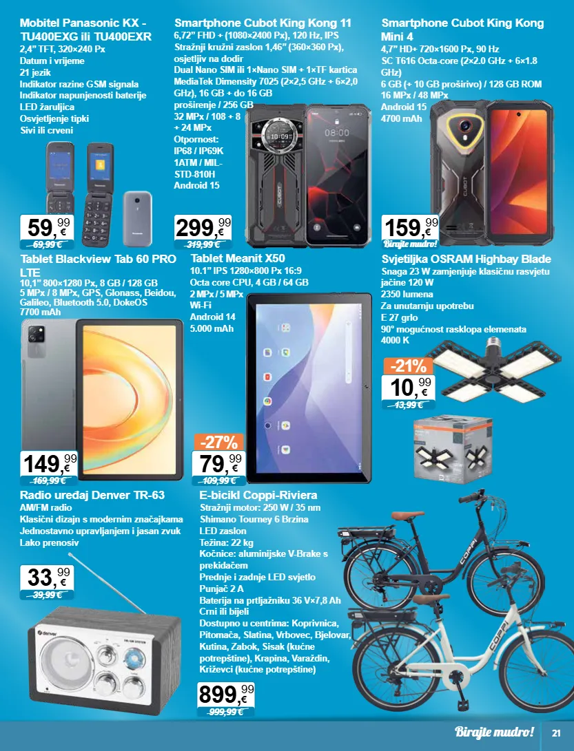 319,99 € 299 , 99 € birajte mudro! 159 , 99 € 59 , 99 € 69,99 € -21% 13,99 € 10 , 99 € 33 , 99 € 39,99 € 999,99 € 899 , 99 € -27% 109,99 € 79 , 99 € 169,99 € 149 , 99 € birajte mudro! 21 smartphone cubot king kong 11 6,72’’ fhd + (1080×2400 px), 120 hz, ips stražnji kružni zaslon 1,46’’ (360×360 px), osjetljiv na dodir dual nano sim ili 1×nano sim + 1×tf kartica mediatek dimensity 7025 (2×2,5 ghz + 6×2,0 ghz), 16 gb + do 16 gb proširenje / 256 gb 32 mpx / 108 + 8 + 24 mpx otpornost: ip68 / ip69k 1atm / mil- std-810h android 15 smartphone cubot king kong mini 4 4,7’’ hd+ 720×1600 px, 90 hz sc t616 octa-core (2×2.0 ghz + 6×1.8 ghz) 6 gb (+ 10 gb proširivo) / 128 gb rom 16 mpx / 48 mpx android 15 4700 mah mobitel panasonic kx - tu400exg ili tu400exr 2,4’’ tft, 320×240 px datum i vrijeme 21 jezik indikator razine gsm signala indikator napunjenosti baterije led žaruljica osvjetljenje tipki sivi ili crveni svjetiljka osram highbay blade snaga 23 w zamjenjuje klasičnu rasvjetu jačine 120 w 2350 lumena za unutarnju upotrebu e 27 grlo 90° mogućnost rasklopa elemenata 4000 k radio uređaj denver tr-63 am/fm radio klasični dizajn s modernim značajkama jednostavno upravljanjem i jasan zvuk lako prenosiv e-bicikl coppi-riviera stražnji motor: 250 w / 35 nm shimano tourney 6 brzina led zaslon težina: 22 kg kočnice: aluminijske v-brake s prekidačem prednje i zadnje led svjetlo punjač 2 a baterija na prtljažniku 36 v×7,8 ah crni ili bijeli dostupno u centrima: koprivnica, pitomača, slatina, vrbovec, bjelovar, kutina, zabok, sisak (kućne potrepštine), krapina, varaždin, križevci (kućne potrepštine) tablet meanit x50 10.1’’ ips 1280×800 px 16:9 octa core cpu, 4 gb / 64 gb 2 mpx / 5 mpx wi-fi android 14 5.000 mah tablet blackview tab 60 pro lte 10,1’’ 800×1280 px, 8 gb / 128 gb 5 mpx / 8 mpx, gps, glonass, beidou, galileo, bluetooth 5.0, dokeos 7700 mah