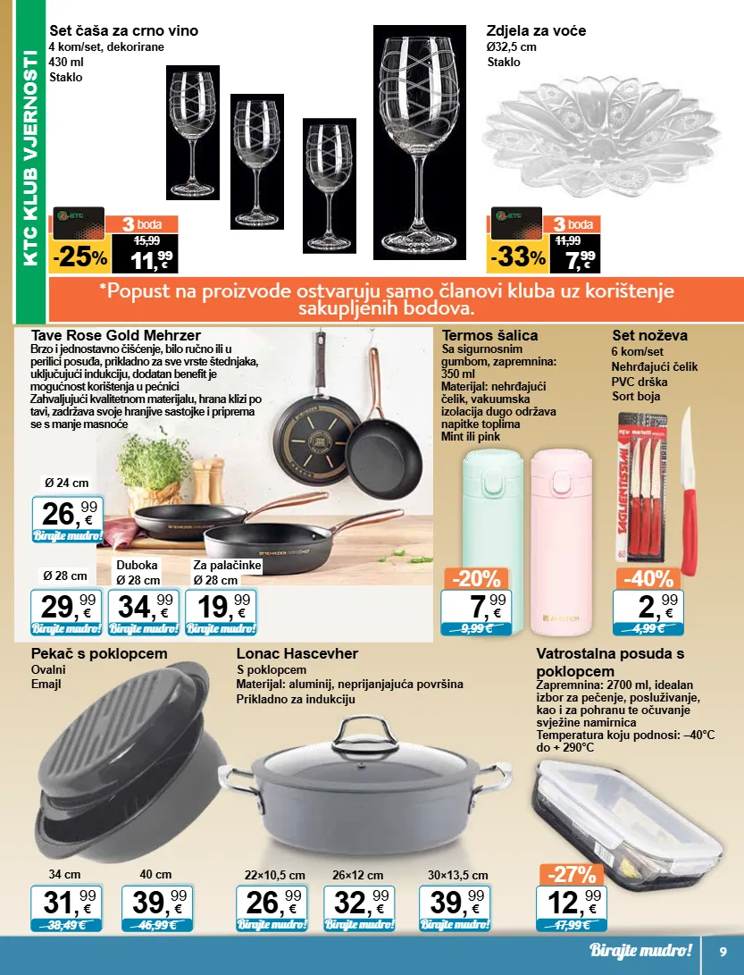 *popust na proizvode ostvaruju samo članovi kluba uz korištenje sakupljenih bodova. ktc klub vjernosti 15,99 11 , 99 - 25 % 3 boda € 11,99 7 , 99 - 33 % 3 boda € -40% 4,99 € 2 , 99 € 31 , 99 € 38,49 € 34 cm 39 , 99 € 46,99 € 40 cm 26 , 99 € birajte mudro! 22×10,5 cm birajte mudro! 32 , 99 € 26×12 cm 39 , 99 € birajte mudro! 30×13,5 cm -20% 9,99 € 7 , 99 € -27% 17,99 € 12 , 99 € 26 , 99 € birajte mudro! ø 24 cm 29 , 99 € birajte mudro! ø 28 cm 34 , 99 € birajte mudro! duboka ø 28 cm 19 , 99 € birajte mudro! za palačinke ø 28 cm birajte mudro! 9 set čaša za crno vino 4 kom/set, dekorirane 430 ml staklo zdjela za voće ø32,5 cm staklo set noževa 6 kom/set nehrđajući čelik pvc drška sort boja pekač s poklopcem ovalni emajl tave rose gold mehrzer brzo i jednostavno čišćenje, bilo ručno ili u perilici posuđa, prikladno za sve vrste štednjaka, uključujući indukciju, dodatan benefit je mogućnost korištenja u pećnici zahvaljujući kvalitetnom materijalu, hrana klizi po tavi, zadržava svoje hranjive sastojke i priprema se s manje masnoće lonac hascevher s poklopcem materijal: aluminij, neprijanjajuća površina prikladno za indukciju termos šalica sa sigurnosnim gumbom, zapremnina: 350 ml materijal: nehrđajući čelik, vakuumska izolacija dugo održava napitke toplima mint ili pink vatrostalna posuda s poklopcem zapremnina: 2700 ml, idealan izbor za pečenje, posluživanje, kao i za pohranu te očuvanje svježine namirnica temperatura koju podnosi: –40°c do + 290°c