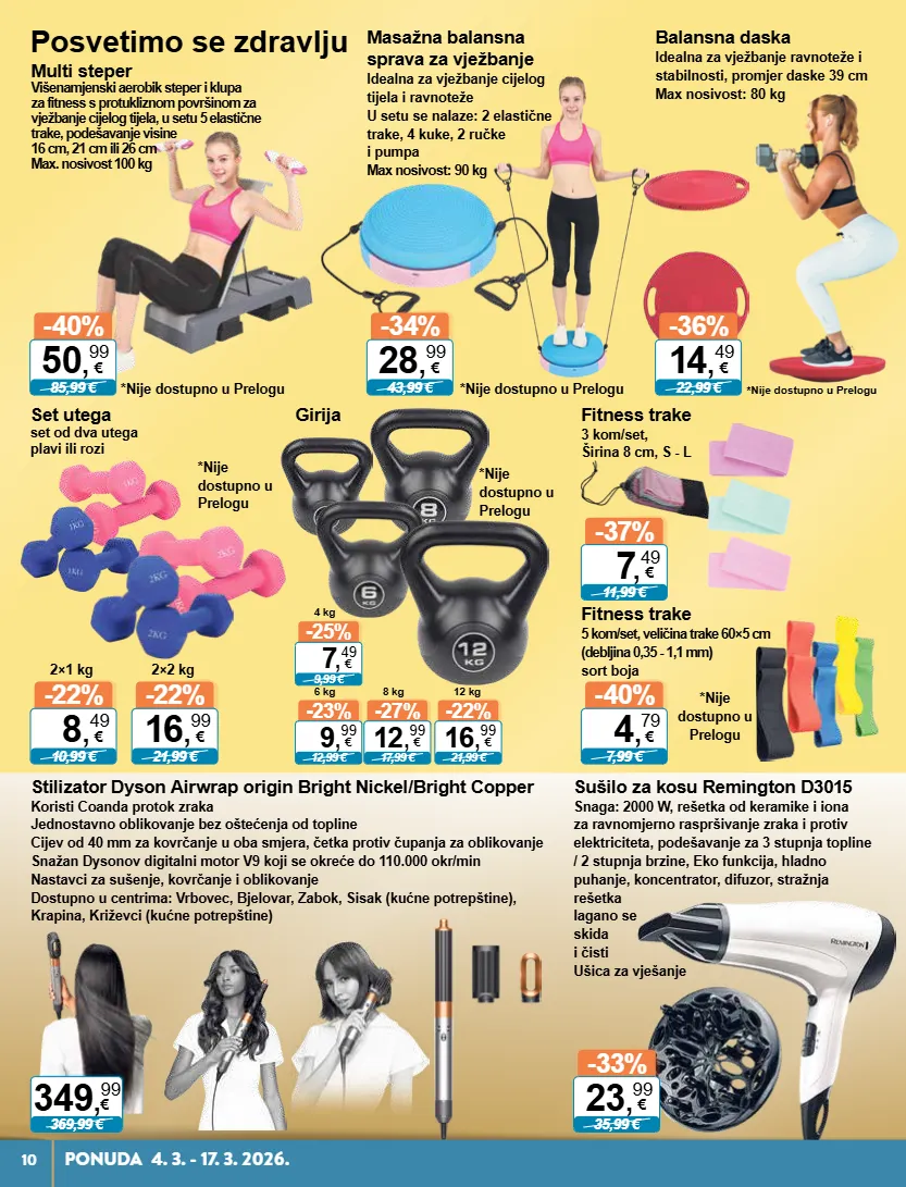 -25% 9,99 € 7 , 49 € 4 kg -23% 12,99 € 9 , 99 € 6 kg -27% 17,99 € 12 , 99 € 8 kg -22% 21,99 € 16 , 99 € 12 kg -37% 11,99 € 7 , 49 € -40% 7,99 € 4 , 79 € -34% 43,99 € 28 , 99 € -36% 22,99 € 14 , 49 € -40% 85,99 € 50 , 99 € -22% 10,99 € 8 , 49 € 2×1 kg -22% 21,99 € 16 , 99 € 2×2 kg -33% 35,99 € 23 , 99 € 369,99 € 349 , 99 € 10 ponuda4. 3.-17.3.2026. girija set utega set od dva utega plavi ili rozi *nije dostupno u prelogu *nije dostupno u prelogu *nije dostupno u prelogu *nije dostupno u prelogu *nije dostupno u prelogu *nije dostupno u prelogu fitness trake 3 kom/set, širina 8 cm, s - l fitness trake 5 kom/set, veličina trake 60×5 cm (debljina 0,35 - 1,1 mm) sort boja masažna balansna sprava za vježbanje idealna za vježbanje cijelog tijela i ravnoteže u setu se nalaze: 2 elastične trake, 4 kuke, 2 ručke i pumpa max nosivost: 90 kg balansna daska idealna za vježbanje ravnoteže i stabilnosti, promjer daske 39 cm max nosivost: 80 kg multi steper višenamjenski aerobik steper i klupa za fitness s protukliznom površinom za vježbanje cijelog tijela, u setu 5 elastične trake, podešavanje visine 16 cm, 21 cm ili 26 cm max. nosivost 100 kg posvetimo se zdravlju sušilo za kosu remington d3015 snaga: 2000 w, rešetka od keramike i iona za ravnomjerno raspršivanje zraka i protiv elektriciteta, podešavanje za 3 stupnja topline / 2 stupnja brzine, eko funkcija, hladno puhanje, koncentrator, difuzor, stražnja rešetka lagano se skida i čisti ušica za vješanje stilizator dyson airwrap origin bright nickel/bright copper koristi coanda protok zraka jednostavno oblikovanje bez oštećenja od topline cijev od 40 mm za kovrčanje u oba smjera, četka protiv čupanja za oblikovanje snažan dysonov digitalni motor v9 koji se okreće do 110.000 okr/min nastavci za sušenje, kovrčanje i oblikovanje dostupno u centrima: vrbovec, bjelovar, zabok, sisak (kućne potrepštine), krapina, križevci (kućne potrepštine)