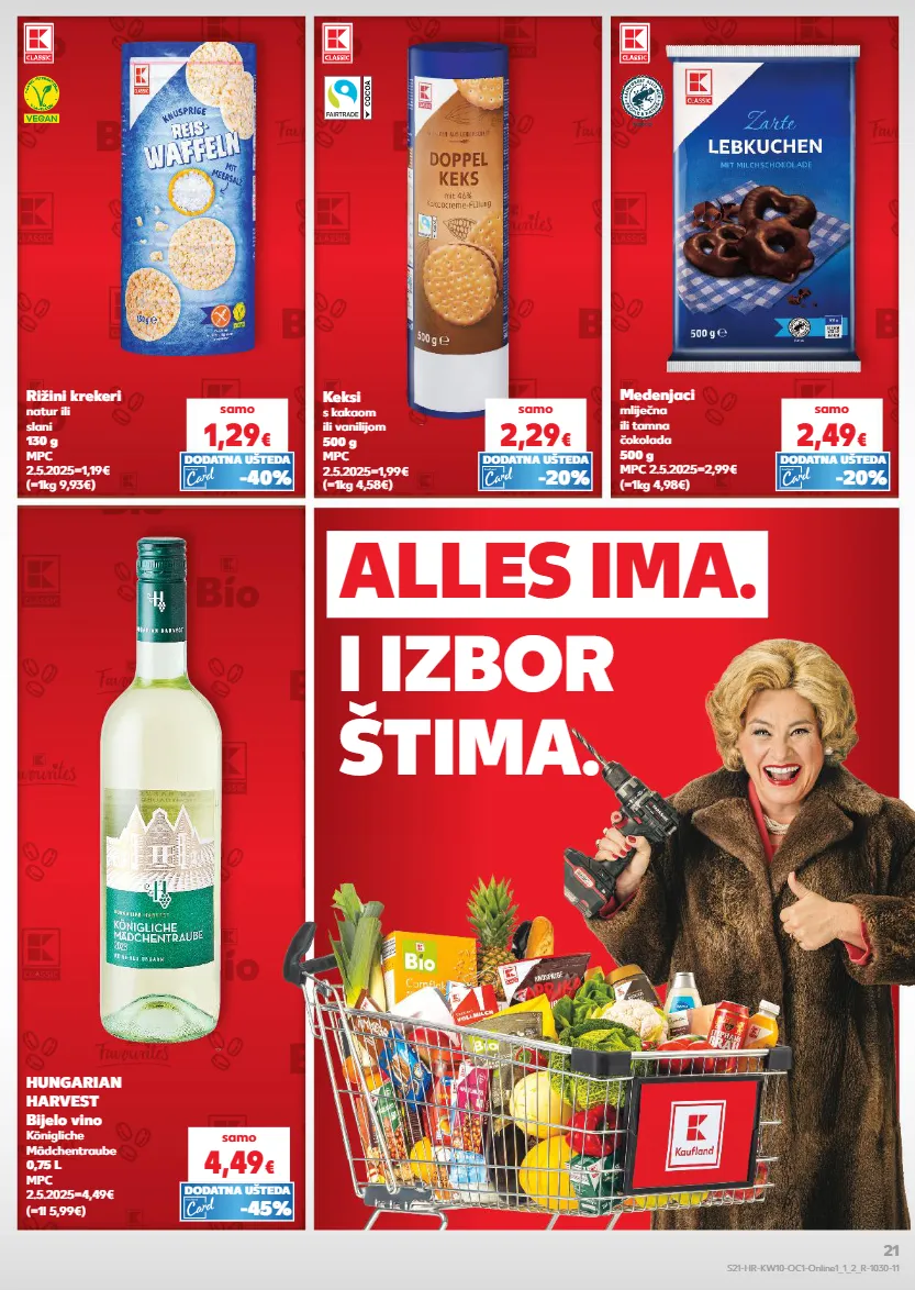 alles ima. i izbor štima. (=1kg 4,58€) (=1kg 4,98€) keksi s kakaom ili vanilijom 500 g mpc 2.5.2025=1,99€ medenjaci mliječna ili tamna čokolada 500 g mpc 2.5.2025=2,99€ (=1kg 9,93€) rižini krekeri natur ili slani 130 g mpc 2.5.2025=1,19€ samo 1,29 € samo 2,29 € samo 2,49 € (=1l 5,99€) hungarian harvest bijelo vino königliche mädchentraube 0,75 l mpc 2.5.2025=4,49€ samo 4,49 € -40% dodatna ušteda -45% dodatna ušteda -20% dodatna ušteda -20% dodatna ušteda s21-hr-kw10-oc1-online1_1_2_r-1030-11 21