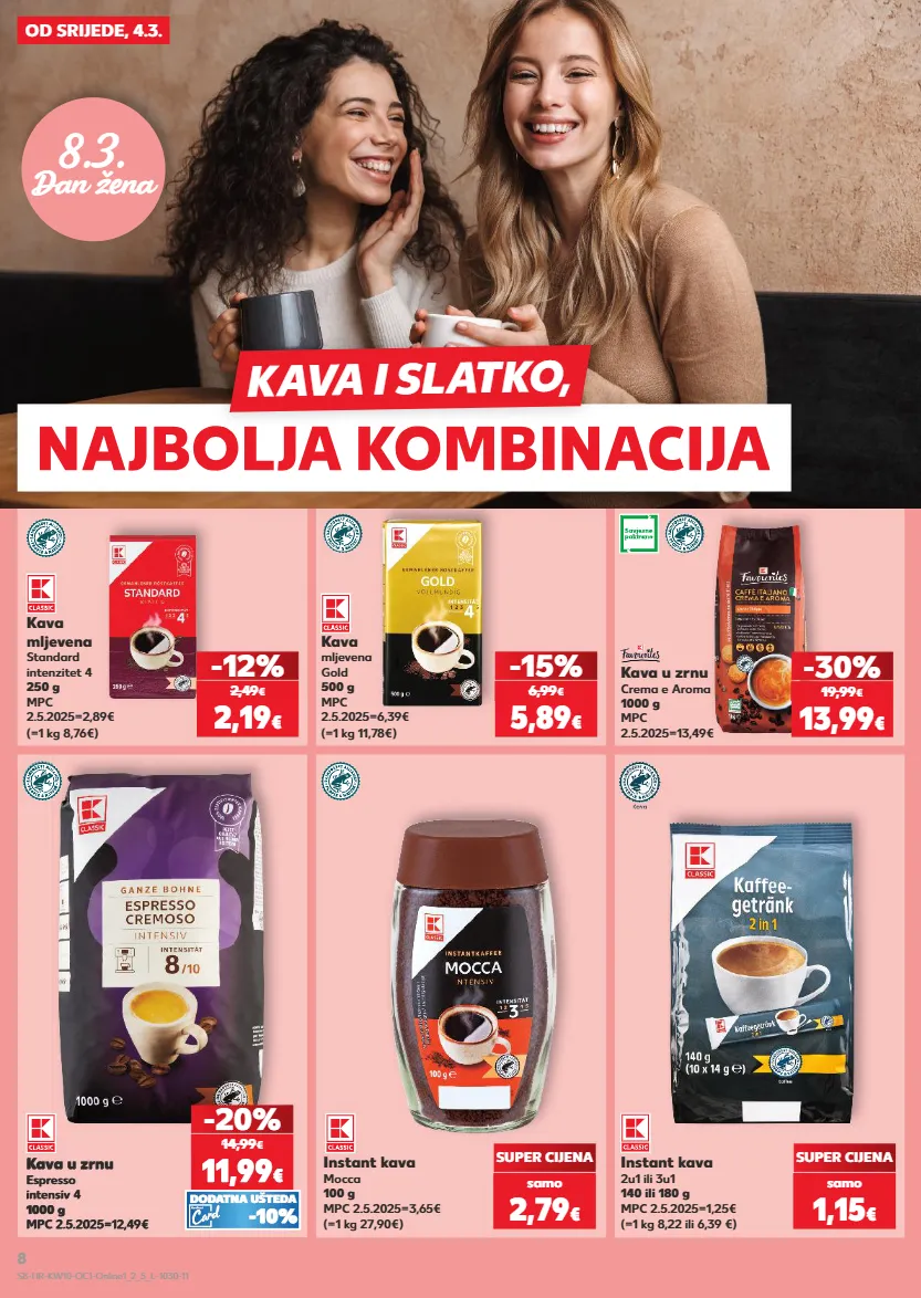 kratkotrajna ponuda kratkotrajna ponuda kratkotrajna ponuda kratkotrajna ponuda kratkotrajna ponuda kratkotrajna ponuda samo samo samo samo od srijede, 4.3. kava mljevena standard intenzitet 4 250 g mpc 2.5.2025=2,89€ (=1 kg 8,76€) kava mljevena gold 500 g mpc 2.5.2025=6,39€ (=1 kg 11,78€) kava u zrnu crema e aroma 1000 g mpc 2.5.2025=13,49€ kava u zrnu espresso intensiv 4 1000 g mpc 2.5.2025=12,49€ instant kava mocca 100 g mpc 2.5.2025=3,65€ (=1 kg 27,90€) instant kava 2u1 ili 3u1 140 ili 180 g mpc 2.5.2025=1,25€ (=1 kg 8,22 ili 6,39 €) -12% -15% -30% super cijena super cijena -20% 2,19 € 2,49 € 5,89 € 6,99 € 13,99 € 19,99 € samo 2,79 € samo 1,15 € 11,99 € 14,99 € -10% dodatna ušteda 8.3. dan žena najbolja kombinacija najbolja kombinacija najbolja kombinacija kava i slatko, s8-hr-kw10-oc1-online1_2_5_l-1030-11 8