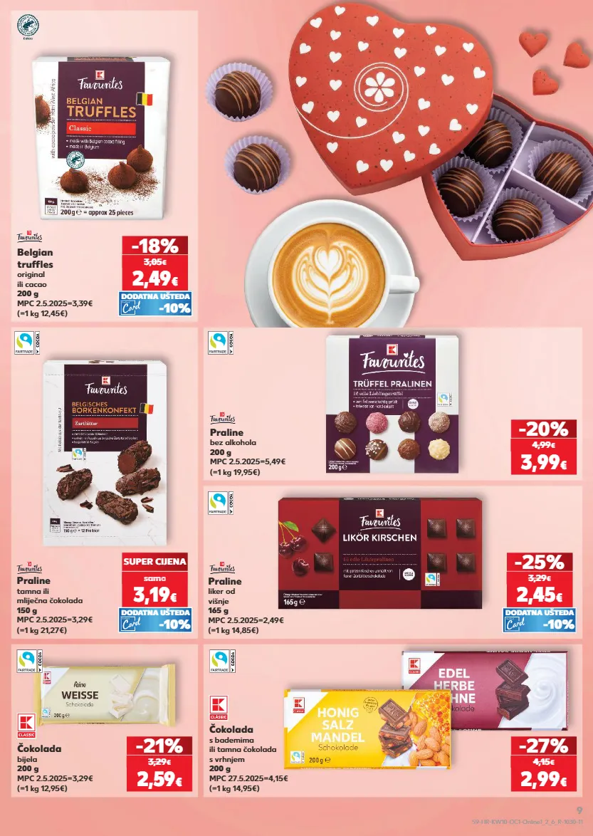 kratkotrajna ponuda kratkotrajna ponuda samo kratkotrajna ponuda samo samo kratkotrajna ponuda kratkotrajna ponuda samo kratkotrajna ponuda samo praline bez alkohola 200 g mpc 2.5.2025=5,49€ (=1 kg 19,95€) -20% čokolada bijela 200 g mpc 2.5.2025=3,29€ (=1 kg 12,95€) -21% 3,99 € 4,99 € čokolada s bademima ili tamna čokolada s vrhnjem 200 g mpc 27.5.2025=4,15€ (=1 kg 14,95€) -27% 2,99 € 4,15 € 2,59 € 3,29 € (=1 kg 21,27€) praline tamna ili mliječna čokolada 150 g mpc 2.5.2025=3,29€ (=1 kg 14,85€) praline liker od višnje 165 g mpc 2.5.2025=2,49€ (=1 kg 12,45€) belgian truffles original ili cacao 200 g mpc 2.5.2025=3,39€ samo 3,19 € super cijena sa o 3,49 samo 3,49 samo 3,4 samo 3,49 sam samo € o € o 2,45 € -25% 3,29 € -18% 2,49 € 3,05 € -10% dodatna ušteda -10% dodatna ušteda -10% dodatna ušteda s9-hr-kw10-oc1-online1_2_6_r-1030-11 9