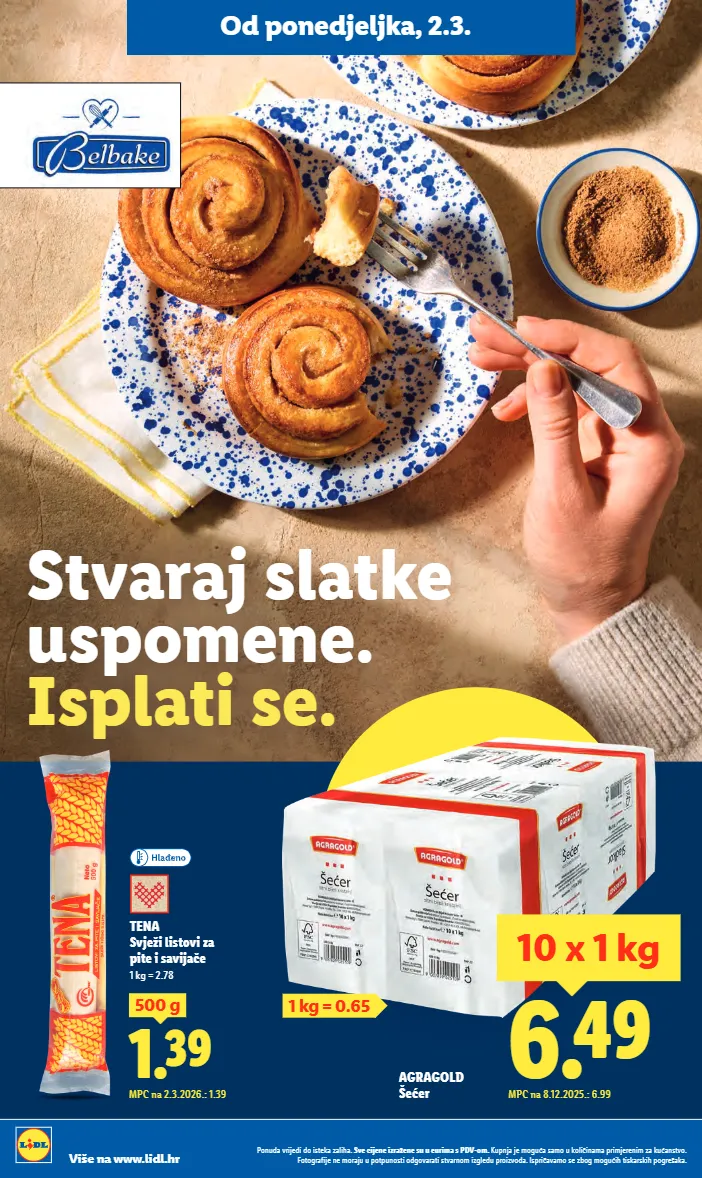 TENA Svježi listovi za pite i savijače 1 kg = 2.78 1.39 500 g MPC na 2.3.2026.: 1.39 AGRAGOLD Šećer 6.49 MPC na 8.12.2025.: 6.99 10 x 1 kg 1 kg = 0.65 Stvaraj slatke uspomene. Isplati se. Od ponedjeljka, 2.3. Ponuda vrijedi do isteka zaliha. Sve cijene izražene su u eurima s PDV-om. Kupnja je moguća samo u količinama primjerenim za kućanstvo. Fotografije ne moraju u potpunosti odgovarati stvarnom izgledu proizvoda. Ispričavamo se zbog mogućih tiskarskih pogrešaka. Više na www.lidl.hr