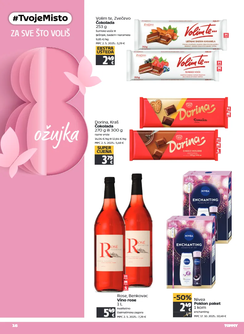 16 ožujka za sve što voliš volim te, zvečevo čokolada 253 g šumsko voće ili lješnjak, badem i karamela 9,85 €/kg mpc 2. 5. 2025.: 3,29 € 2 49 ekstra ušteda dorina, kraš čokolada 270 g ili 300 g razne vrste 14,04 €/kg ili 12,64 €/kg mpc 2. 5. 2025.: 5,49 € 3 79 super cijena rose, benkovac vino rose 1 l kvalitetno dalmatinska zagora mpc 2. 5. 2025.: 7,29 € 5 49 2 49 4 99 -50% nivea poklon paket 1 kom enchanting mpc 17. 10. 2025.: 10,49 €