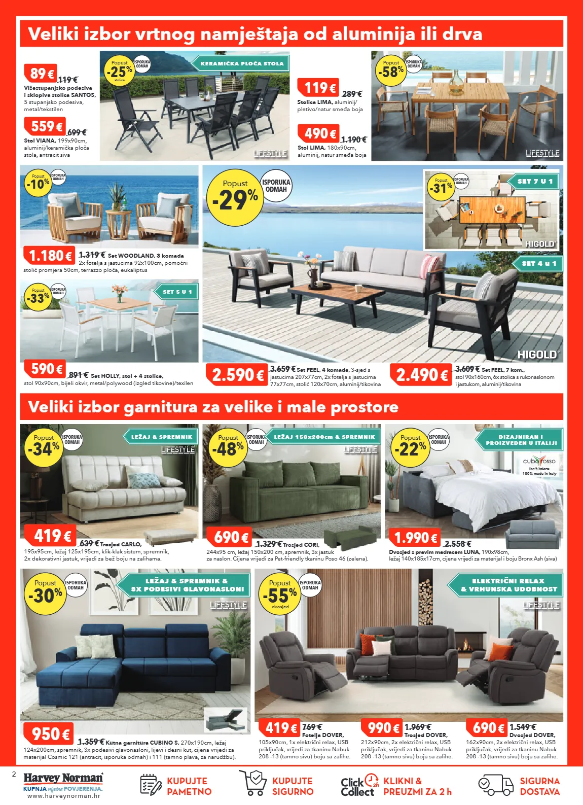 2 kupnja vrijedna povjerenja. www.harveynorman.hr kupujte pametno kupujte sigurno sigurna dostava klikni & preuzmi za 2 h veliki izbor garnitura za velike i male prostore 419 € 769 € fotelja dover, 105x90cm, 1x električni relax, usb priključak, vrijedi za tkaninu nabuk 208 -13 (tamno sivu) boju sa zalihe. 990 € 1.969 € trosjed dover, 212x90cm, 2x električni relax, usb priključak, vrijedi za tkaninu nabuk 208 -13 (tamno sivu) boju sa zalihe. 690 € 1.549 € dvosjed dover, 162x90cm, 2x električni relax, usb priključak, vrijedi za tkaninu nabuk 208 -13 (tamno sivu) boju sa zalihe. 950 € 1.359 € kutna garnitura cubino s, 270x190cm, ležaj 124x200cm, spremnik, 3x podesivi glavonasloni, lijevi i desni kut, cijena vrijedi za materijal cosmic 121 (antracit, isporuka odmah) i 111 (tamno plava, za narudžbu). isporuka odmah -30 % popust isporuka odmah -55 % dvosjed popust ležaj & spremnik & 3x podesivi glavonasloni električni relax & vrhunska udobnost 419 € 639 € trosjed carlo, 195x95cm, ležaj 125x195cm, klik-klak sistem, spremnik, 2x dekorativni jastuk, vrijedi za bež boju na zalihama. 690 € 1.329 € trosjed cori, 244x95 cm, ležaj 150x200 cm, spremnik, 3x jastuk za naslon. cijena vrijedi za pet-friendly tkaninu poso 46 (zelena). 1.990 € 2.558 € dvosjed s pravim madracem luna, 190x98cm, ležaj 140x185x17cm, cijena vrijedi za materijal i boju bronx ash (siva) isporuka odmah -34 % popust isporuka odmah -48 % popust ležaj & spremnik ležaj 150 x 200 cm & spremnik isporuka odmah -22 % popust dizajniran i proizveden u italiji 100% made in italy 89 € 119 € višestupanjsko podesiva i sklopiva stolica santos, 5 stupanjsko podesiva, metal/tekstilen isporuka odmah -25 % stolica popust isporuka odmah -58 % popust 590 € 891 € set holly, stol + 4 stolice, stol 90x90cm, bijeli okvir, metal/polywood (izgled tikovine)/texilen keramička ploča stola set 5 u 1 isporuka odmah -33 % popust isporuka odmah -10 % popust 1.180 € 1.319 € set woodland, 3 komada 2x fotelja s jastucima 92x100cm, pomoćni stolić promjera 50cm, terrazzo ploča, eukaliptus 559 € 699 € stol viana, 199x90cm, aluminij/keramička ploča stola, antracit siva 490 € 1.190 € stol lima, 180x90cm, aluminij, natur smeđa boja 119 € 289 € stolica lima, aluminij/ pletivo/natur smeđa boja isporuka odmah -29 % popust 2.590 € 3.659 € set feel, 4 komada, 3-sjed s jastucima 207x77cm, 2x fotelja s jastucima 77x77cm, stolić 120x70cm, aluminij/tikovina isporuka odmah -31 % popust set 7 u 1 set 4 u 1 veliki izbor vrtnog namještaja od aluminija ili drva 2.490 € 3.609 € set feel, 7 kom., stol 90x160cm, 6x stolica s rukonaslonom i jastukom, aluminij/tikovina