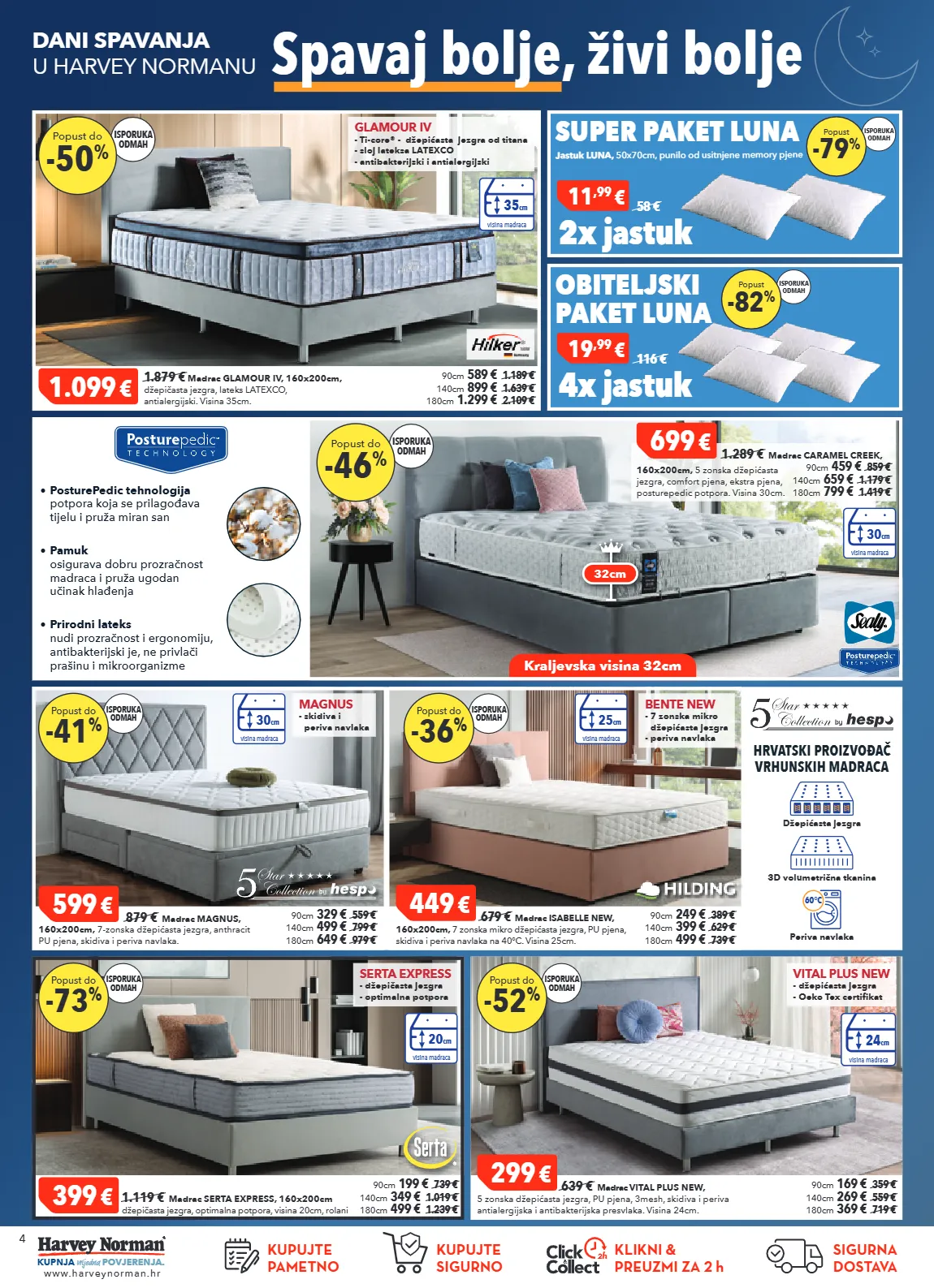 4 kupnja vrijedna povjerenja. www.harveynorman.hr kupujte pametno kupujte sigurno sigurna dostava klikni & preuzmi za 2 h kraljevska visina 32cm spavaj bolje, živi bolje dani spavanja u harvey normanu 1.099 € 1. 879 € madrac glamour iv, 160x200cm, džepičasta jezgra, lateks latexco, antialergijski. visina 35cm. 90cm 589 € 1.189 € 140cm 899 € 1.639 € 180cm 1.299 € 2.109 € 35 cm visina madraca glamour iv - ti-core® - džepićasta jezgra od titana - sloj lateksa latexco - antibakterijski i antialergijski isporuka odmah -50 % popust do 2x jastuk super paket luna jastuk luna, 50x70cm, punilo od usitnjene memory pjene obiteljski paket luna 11 ,99 € 58 € 4x jastuk 19 ,99 € 116 € isporuka odmah -79 % popust isporuka odmah -82 % popust 30 cm visina madraca isporuka odmah -46 % popust do • prirodni lateks nudi prozračnost i ergonomiju, antibakterijski je, ne privlači prašinu i mikroorganizme • pamuk osigurava dobru prozračnost madraca i pruža ugodan učinak hlađenja • posturepedic tehnologija potpora koja se prilagođava tijelu i pruža miran san 699 € 1.289 € madrac caramel creek, 160x200cm, 5 zonska džepićasta jezgra, comfort pjena, ekstra pjena, posturepedic potpora. visina 30cm. 90cm 459 € 859 € 140cm 659 € 1.179 € 180cm 799 € 1.419 € 32cm 449 € 679 € madrac isabelle new, 160x200cm, 7 zonska mikro džepićasta jezgra, pu pjena, skidiva i periva navlaka na 40°c. visina 25cm. 90cm 249 € 389 € 140cm 399 € 629 € 180cm 499 € 739 € 599 € 879 € madrac magnus, 160x200cm, 7-zonska džepićasta jezgra, anthracit pu pjena, skidiva i periva navlaka. 90cm 329 € 559 € 140cm 499 € 799 € 180cm 649 € 979 € hrvatski proizvođač vrhunskih madraca 3d volumetrična tkanina džepićasta jezgra periva navlaka 60 ° c 30 cm visina madraca magnus - skidiva i periva navlaka 25 cm visina madraca bente new - 7 zonska mikro džepićasta jezgra - periva navlaka isporuka odmah -41 % popust do isporuka odmah -73 % popust do isporuka odmah -36 % popust do 20 cm visina madraca serta express - džepičasta jezgra - optimalna potpora 399 € 1.119 € madrac serta express , 160x200cm džepičasta jezgra, optimalna potpora, visina 20cm, rolani 90cm 199 € 739 € 140cm 349 € 1.019 € 180cm 499 € 1.239 € 299 € 639 € madrac vital plus new, 5 zonska džepićasta jezgra, pu pjena, 3mesh, skidiva i periva antialergijska i antibakterijska presvlaka. visina 24cm. 90cm 169 € 359 € 140cm 269 € 559 € 180cm 369 € 719 € vital plus new - džepićasta jezgra - oeko tex certifikat 24 cm visina madraca isporuka odmah -52 % popust do